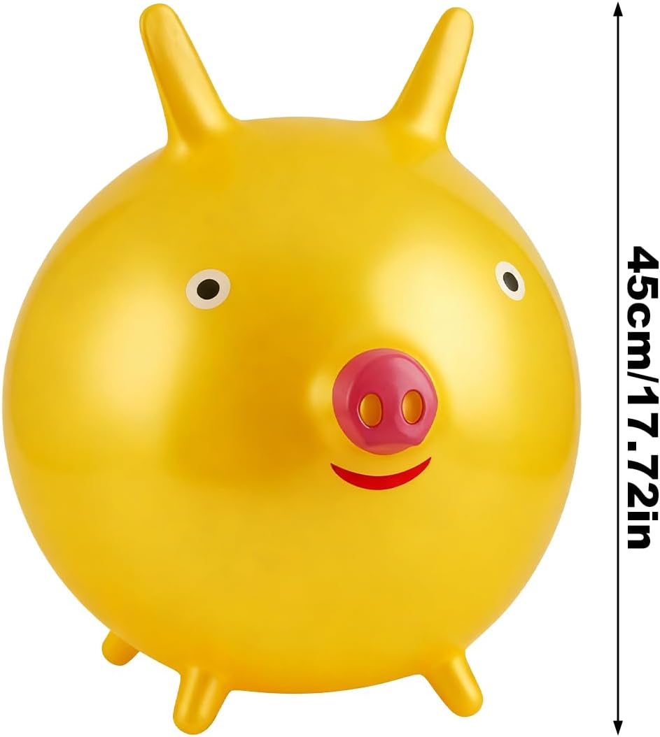 Design rinforzato per una maggiore stabilità: lo spessore rinforzato della palla rimbalzante garantisce una durata di utilizzo prolonged resistendo efficacemente alla perdita d'aria e mantenendo un salto uniforme. Questo lo rende ideale per attività energiche a casa, a scuola o nei parchi giochi, dove prestazioni affidabili sono fondamentali per un divertimento ininterrotto. La struttura robusta supporta ore di divertimento senza sacrificare la forza di rimbalzo o la stabilità dimensionale. Design giocattolo interattivo: con adorabili accenti di orecchie di animale e dinamica ottica dei cartoni animati, questa palla rimbalzante rende l'attività fisica più attraente. Trasforma le fasi di rimbalzo quotidiane in occasioni gioiose per divertimento e sviluppo creativo, stimola i bambini a giocare attivamente e quindi promuove il loro sviluppo in modo divertente. Interazione genitore-figlio: grazie alla loro idoneità per le superfici piane, queste palline per saltare promuovono una connessione significativa durante i giochi genitore-figlio. Offrono ore di divertimento grazie al movimento dinamico e al salto singolo flessibile in diverse situazioni, arricchendo il tempo insieme e l'interazione. Supporto delle abilità di base: la palla rimbalzante per bambini funge da dispositivo di allenamento sensoriale che migliora la consapevolezza propriocettiva e le reazioni tattili e promuove lo sviluppo del senso vestibolare. Aiuta a mantenere l'equilibrio, rendendolo perfetto per un tempo di gioco accattivante a casa o a scuola e rafforza le abilità di base in modo sostenibile. Design di rafforzamento della fiducia in se stessi: la palla per saltare per bambini è dotata di maniglie appositamente progettate che offrono una presa sicura mentre i bambini si siedono su di essa, promuovendo così la sicurezza e il controllo. Questo design ergonomico dell'impugnatura migliora l'equilibrio e consente ai bambini di partecipare gioiosamente al gioco di rimbalzo all'interno o all'esterno senza esitazioni, sostenendo il loro sviluppo.