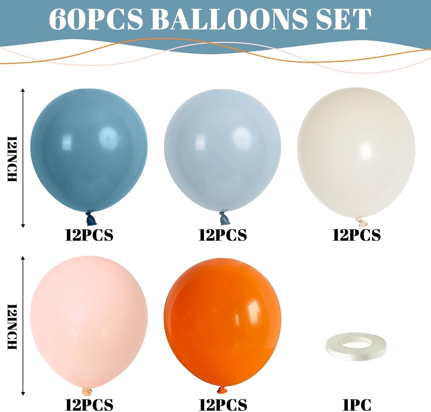 Palloncini beige arancione e blu da 30,5 cm: la confezione include 60 palloncini da 30,5 cm: 12 palloncini blu mare, 12 palloncini blu nebbia, 12 palloncini bianco avorio, 12 palloncini arancione pastello, 12 palloncini arancioni e 1 nastro da 10 m. Quantità sufficiente e colori diversi per soddisfare le vostre varie esigenze di decorazione! Palloncini di alta qualità: i nostri palloncini arancioni e blu beige sono realizzati in lattice di alta qualità, che li rende robusti, riutilizzabili e sicuri per l'uso intorno ai bambini. I colori vivaci aggiungono un tocco straordinario all'arredamento di qualsiasi festa per bambini. Questi bellissimi palloncini sono facili da gonfiare e sgonfiare, garantendo una configurazione e una pulizia senza problemi. Perfetto per creare un'atmosfera festosa al tuo evento! Installazione senza sforzo: questi palloncini in lattice arancione beige blu possono essere gonfiati con elio o aria. Si prega di fare attenzione a non gonfiare eccessivamente il palloncino. Il livello di inflazione ottimale è dell'80%-90%. Ampia gamma di applicazioni: l'affascinante set di palloncini Orang blu beige è perfetto per una vasta gamma di occasioni, tra cui baby shower, matrimoni, lauree, fidanzamenti, rivelazioni di genere, compleanni, feste a tema, feste ed eventi a tema. Questi palloncini aggiungono un tocco di eleganza e divertimento, migliorando la bellezza e l'atmosfera di qualsiasi celebrazione. Promemoria delicata: tenere gli oggetti appuntiti a distanza per evitare forature accidentali. Questi palloncini sono riutilizzabili. ATTENZIONE: Pericolo di soffocamento. I palloncini devono essere sempre utilizzati sotto la supervisione di un adulto per garantire la sicurezza dei bambini