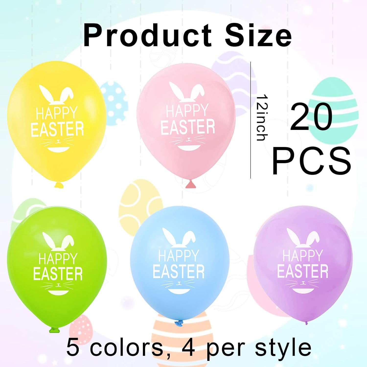 Palloncini decorativi pasquali: 20 palloncini pasquali stampati con orecchie da coniglietto pasquale. La quantità è sufficiente per la decorazione della festa di Pasqua. Palloncini per feste per bambini: i palloncini Happy Easter possono essere utilizzati per decorare feste di Pasqua, cene, feste in giardino, celebrazioni, feste di compleanno, baby shower. MATERIALE DUREVOLE: i palloncini per la festa di Pasqua sono realizzati in lattice durevole di alta qualità, resistente, durevole e riutilizzabile. 【Palloncini a forma di coniglietto in lattice da 12 pollici】 I palloncini a forma di coniglietto pasquale sono adatti per essere riempiti con aria ed elio. Perfetto per la decorazione di interni ed esterni. 【Ampie applicazioni】 Il set di palloncini pasquali è adatto per essere appeso in vari luoghi, come porte, archi, rami di alberi, eventi all'aperto, ristoranti, soffitti, finestre. Stanza, camera da letto, cucina, ufficio, aula.