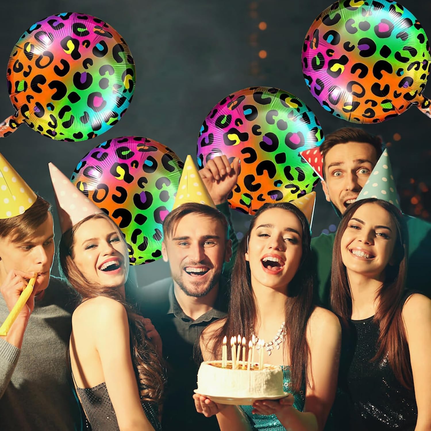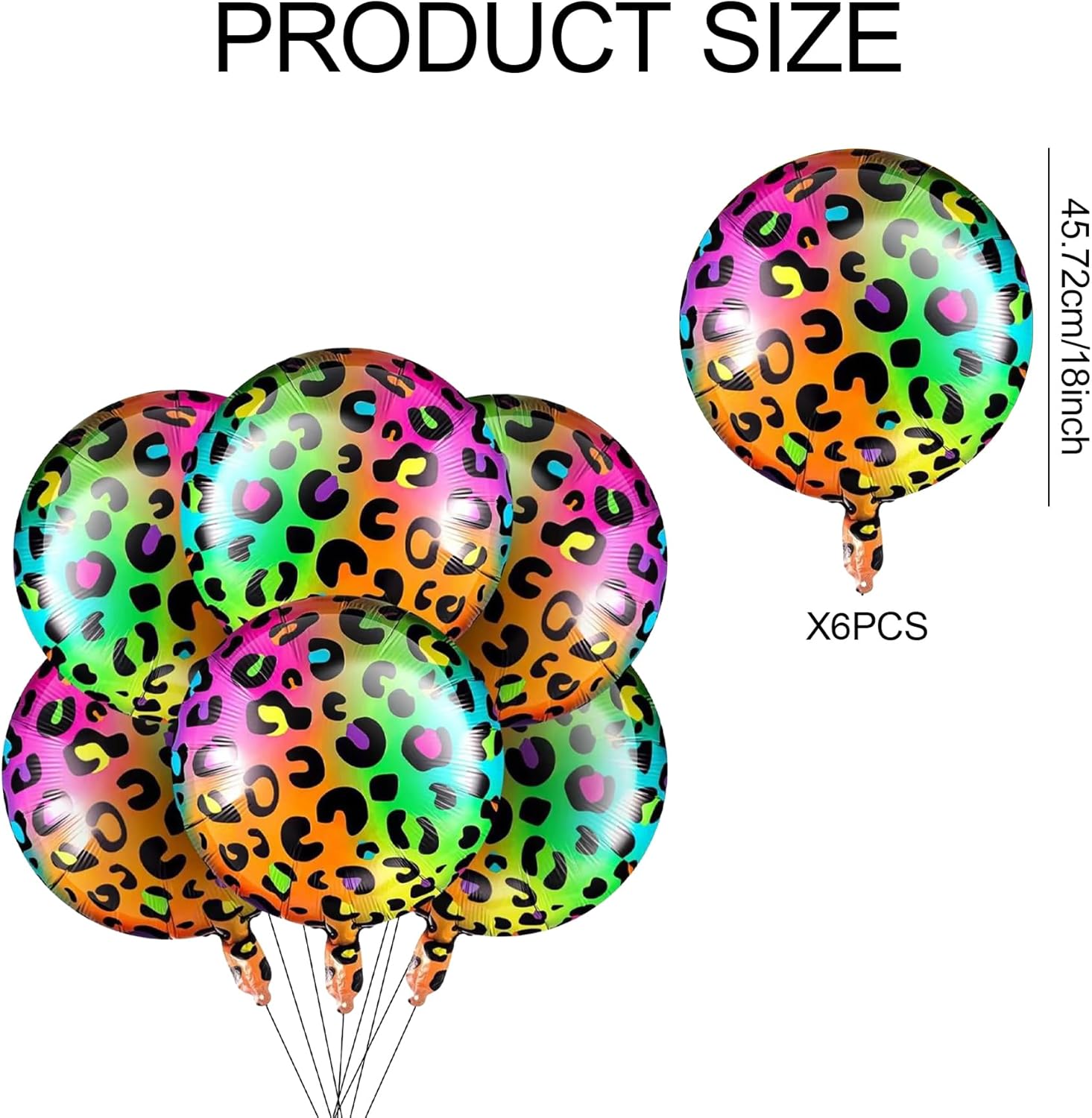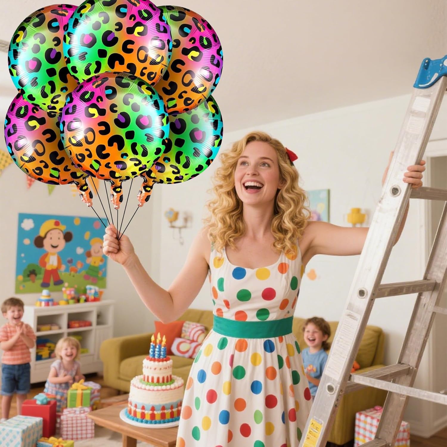 Design vivace leopardato: questo set di 6 palloncini colorati con stampa leopardata (45,7 cm) presenta stampe leopardate arcobaleno selvatiche - perfette decorazioni di compleanno con stampa leopardata. Confezione completa per feste: include palloncini, nastri e cannucce - tutto il necessario per le decorazioni per feste di ghepardo che si distinguono. Qualità premium: palloncini spessi e resistenti con stampa animalier che trattengono bene l'aria e mantengono i loro audaci motivi di palloncini con stampa ghepardo. Facile da usare: viene fornito con cannucce di gonfiaggio per una rapida installazione, ideale per la preparazione della festa di compleanno del ghepardo arcobaleno dell'ultimo minuto. Decorazione versatile: funziona per temi di palloncini safari, feste selvagge o aggiungendo un tocco esotico a qualsiasi celebrazione.