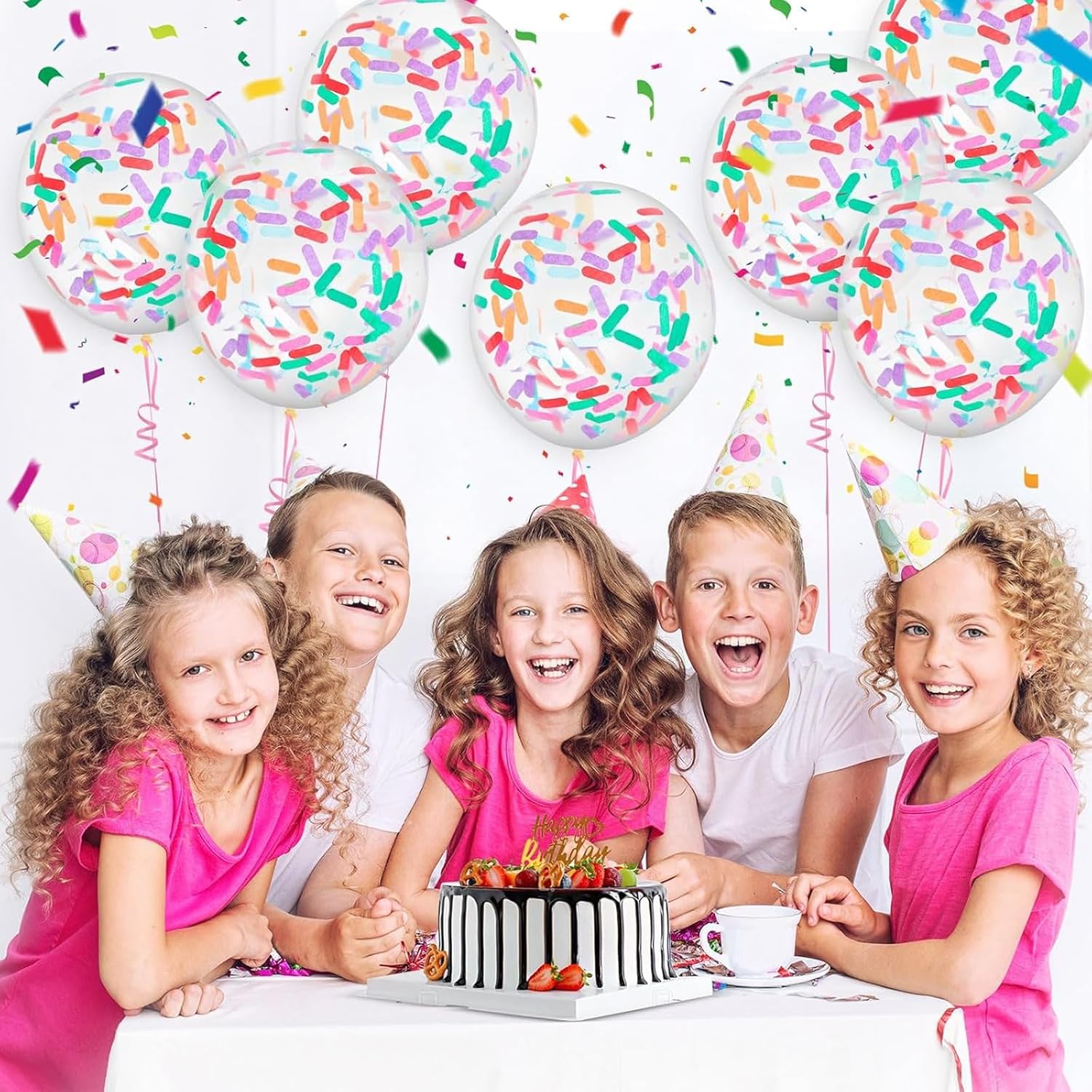 Palloncini coriandoli colorati nei colori dell'arcobaleno - Questo set contiene 10 palloncini di alta qualità con coriandoli lucenti che brillano come un dolce arcobaleno nei tenui colori macaron. Perfetti per un compleanno, un matrimonio, un baby shower o un anniversario: questi palloncini colorati creano un'atmosfera allegra e festosa. Palloncini coriandoli da 30 CM per ogni celebrazione - I nostri palloncini coriandoli hanno una dimensione ideale di 30 cm e sono riempiti con strisce di carta colorate che creano un grande effetto quando vengono agitati. Che si tratti di palloncini per il compleanno, il fidanzamento o il Natale di un bambino, questi palloncini colorati attirano davvero l'attenzione. Palloncini trasparenti con coriandoli di carta - I palloncini trasparenti mettono in risalto i coriandoli colorati all'interno e creano un look magico. Ideali come palloncini arcobaleno per feste o come palloncini colorati per idee decorative creative. PALLONCINI MULTIUSO PER OCCASIONI SPECIALI - Questi palloncini coriandoli sono perfetti per carnevali, lauree, compleanni e molto altro ancora. Possono essere riempiti con aria o elio e, come palloncini colorati, fanno colpo in ogni stanza. Qualità Ovanda per momenti indimenticabili - I nostri set di palloncini compleanno ti offrono palloncini colorati e durevoli nei colori dell'arcobaleno facili da decorare. Un must per ogni festa di successo: affidati ai palloncini coriandoli Ovanda per la tua prossima festa!
