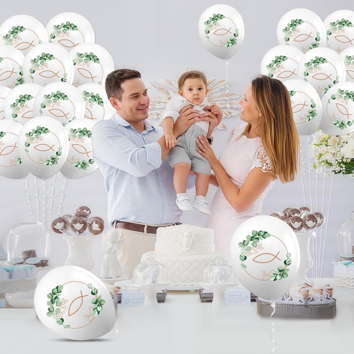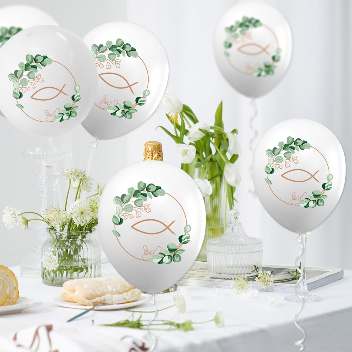 【Decorazioni Cresima】Riceverete 20 pezzi Palloncini Comunione, 1 pezzi nastro bianco. Integrate la fede nell'arredamento per rendere il vostro battesimo più sacro e cerimoniale. 【Benedizioni di Cuore】Con l'aggiunta del motivo del pesce e delle ghirlande di eucalipto, si adatta meglio al tema del battesimo di comunione. Il pesce è uno dei simboli più antichi del cristianesimo e il motivo a forma di pesce su questi Palloncini Battesimo simboleggia gli auguri alle persone e che possano rimanere salde nella loro fede. Le foglie simboleggiano la vita, la crescita e la speranza, che possano raccogliere felicità e gioia 【Materiale di Alta Qualità】Comprendiamo l'unicità di ogni celebrazione, quindi il Palloncini Cresima è realizzato in materiale di lattice di alta qualità per garantire che il palloncino duri a lungo in modo che questa meravigliosa benedizione possa arrivare in modo sicuro e senza rimpianti. 【Decorazione Perfetta per la Cresima】I palloncini per la comunione sono perfetti per le celebrazioni cristiane come decorazioni per la comunione, decorazioni per la cresima, decorazioni per la prima comunione, matrimoni, decorazioni per il battesimo o feste di addio, ecc. 【Suggerimenti】Il palloncino della cresima può essere riempito con aria ed elio e ogni palloncino sarà abbastanza grande dopo il gonfiaggio. Si prega di non riempire eccessivamente il palloncino per evitare esplosioni accidentali.