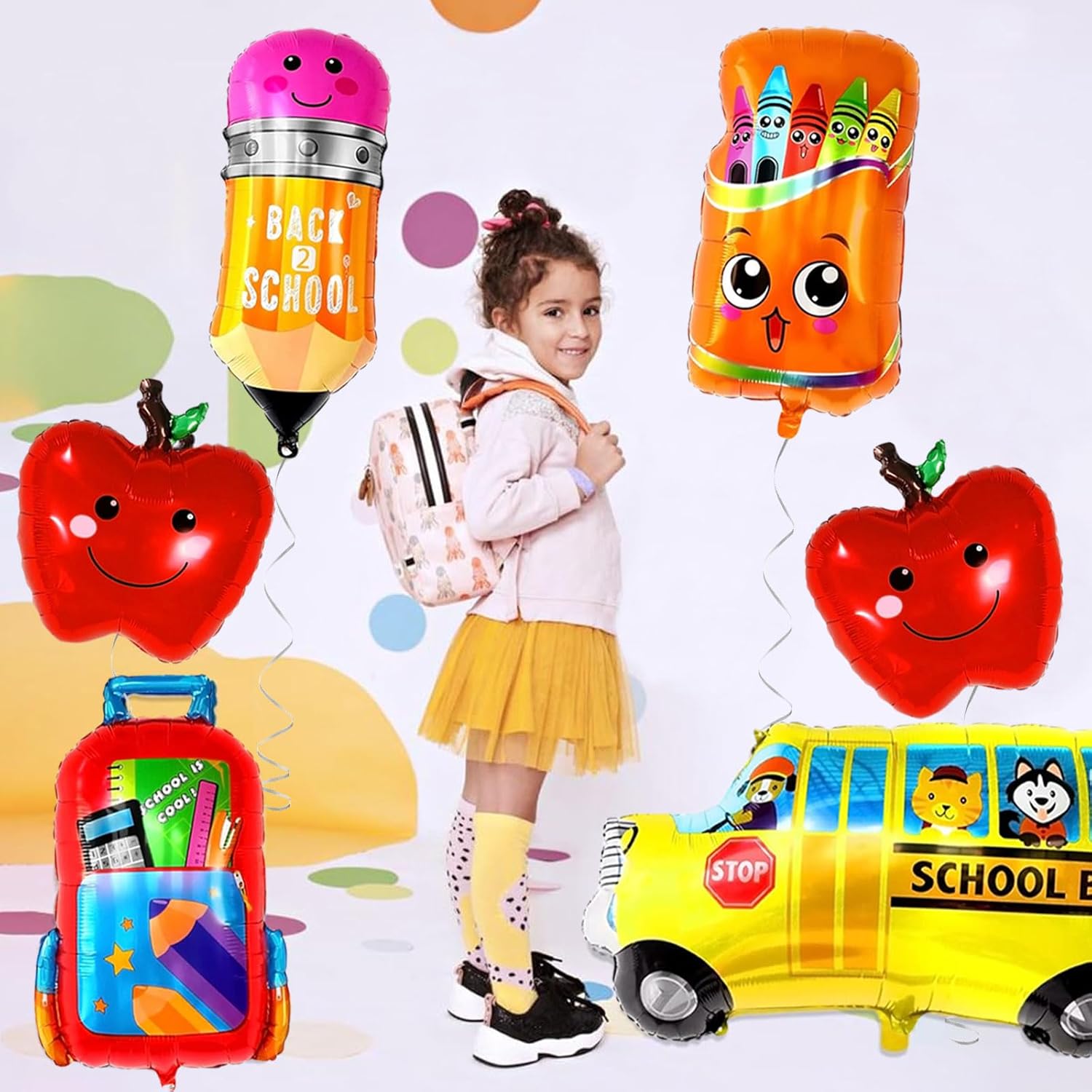 🎈【Set di decorazioni per il ritorno a scuola】 6 palloncini in alluminio: 1 palloncino a forma di autobus, 1 palloncino a forma di zaino, 1 palloncino a forma di matita, 1 palloncino a forma di pastello, 2 palloncini in alluminio a forma di mela, forma unica, contenuto ricco, possono decorare completamente il luogo della tua festa di ritorno a scuola. 🎈【Materiali】: Realizzato in alluminio premium, non facile da rompere, riutilizzabile, che è molto durevole, durevole e inodore, il colore è lucido, auto-sigillante e a prova di perdite. 🎈【Disegni】: Migliora le tue idee creative di decorazione, progettare forniture scolastiche come autobus scolastici, fluido di correzione, matite, zaini, righelli, ecc. 🎈【Decorazione per il ritorno a scuola】Tutti i palloncini possono essere riempiti con aria o elio.Puoi usare la tua immaginazione per creare una festa di ritorno a scuola unica. I palloncini possono essere riutilizzati alle feste. 🎈【Felice ritorno a scuola】Puoi appendere i kit di palloncini decorativi e gli striscioni di ritorno a scuola sulla porta della scuola, sulla porta dell'aula o sul podio. Simpatiche decorazioni per le iscrizioni scolastiche, possono essere appese nelle scuole, nelle aule quando gli studenti iniziano la scuola, accattivanti e divertenti, rendono il tuo bambino più entusiasta della scuola.