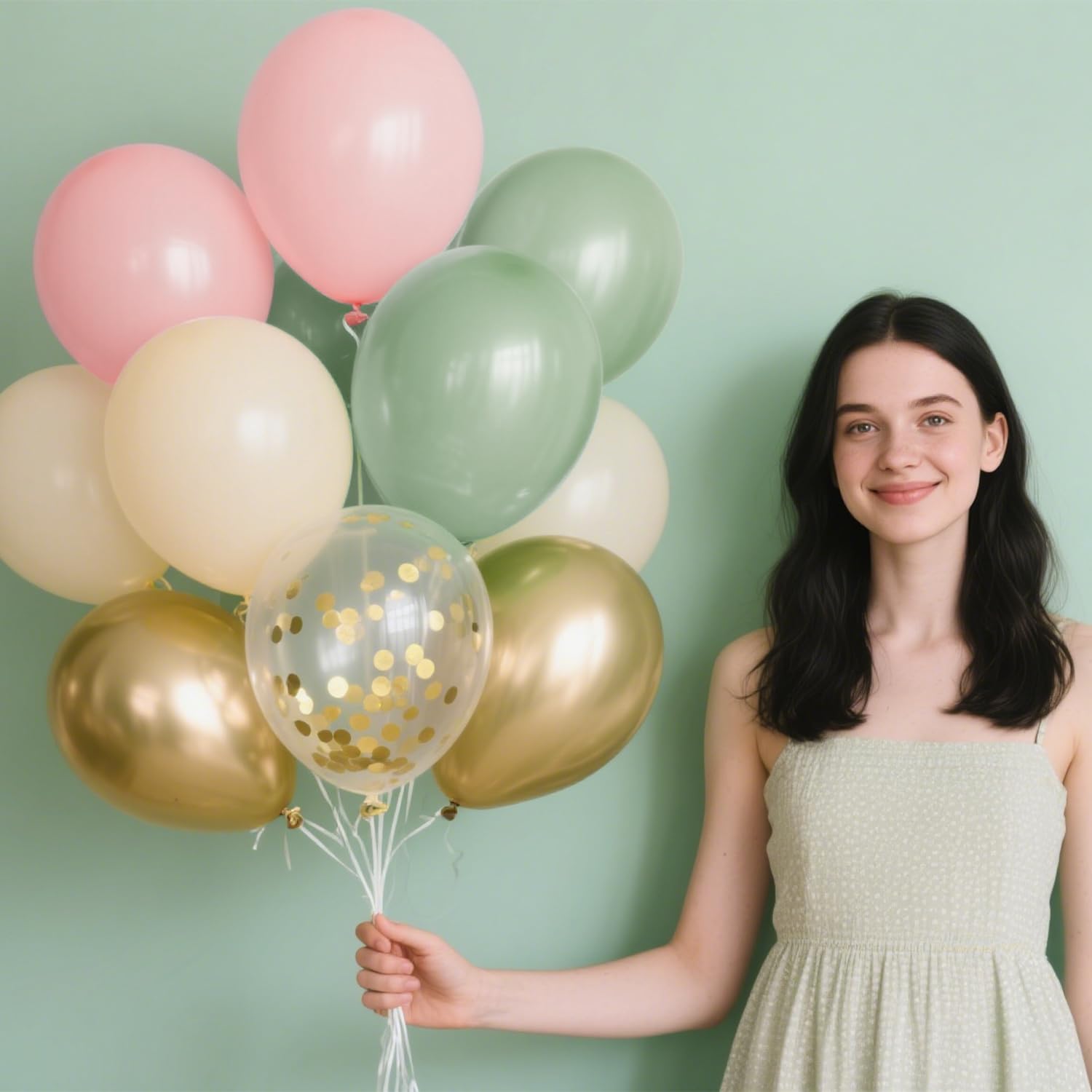 【Set di palloncini rosa, verdi e oro】: Questo set include 15 palloncini verde salvia, 15 palloncini rosa pastello, 10 palloncini oro metallizzato, 10 palloncini bianco opaco, 10 palloncini coriandoli oro e 1 nastro per palloncini. 【Qualità eccellente】: Il set di palloncini rosa e verdi è realizzato in lattice naturale di alta qualità e resistente, atossico e inodore, sicuro per i bambini. I palloncini in lattice rosa e verdi spessi non scoppiano facilmente. 【Palloncini per feste rosa e verdi】: Che sia all'interno o all'esterno, questo set di palloncini di compleanno rosa e verdi può aggiungere un'atmosfera romantica, calda e unica alle decorazioni della tua festa. 【Facile da usare】: Il kit di palloncini rosa e verdi e oro può essere gonfiato ad aria o elio. Sono facili da gonfiare e trattengono aria o elio a lungo. Il set di palloncini rosa e verdi non solo è bello da vedere, ma mantiene anche i suoi colori vivaci anche dopo il gonfiaggio. 【Ampiamente utilizzato】: il set di palloncini a elio rosa, verde e oro è adatto per compleanni, matrimoni, fidanzamenti nuziali, anniversari, baby shower, battesimi, feste di laurea, decorazioni di laurea e altro ancora.