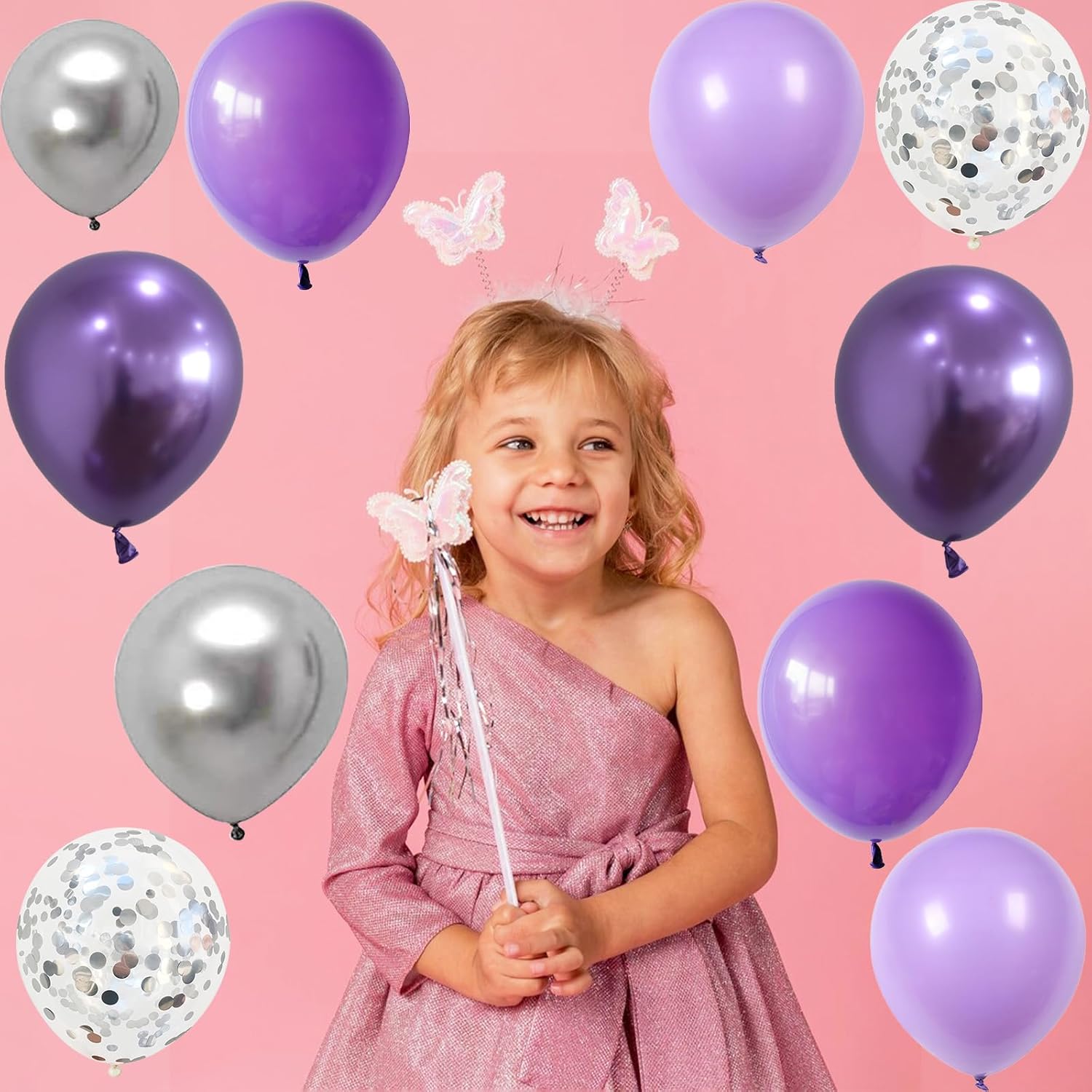 Set di palloncini viola argento: 35 palloncini in lattice da 30 cm, includono 10 palloncini viola opaco, 10 palloncini viola chiaro, 5 palloncini viola metallizzato, 5 palloncini in argento metallizzato, 5 coriandoli d'argento e 1 nastro viola Materiale di alta qualità: realizzati in lattice eccellente, questi palloncini sono spessi, elastici, sicuri, inodore e costruiti per durare. Adatto per adulti e bambini Installazione semplice: gonfiare facilmente questi palloncini per feste utilizzando una pompa ad aria o elio. Per i palloncini galleggianti, considera di riempirli con gas azotato. Per risultati ottimali, si consiglia di gonfiarli il giorno di utilizzo o il giorno prima Uso versatile: questi eccellenti palloncini sono perfetti per una miriade di occasioni, tra cui compleanno per ragazze e donne, feste a tema principessa, laurea, baby shower, matrimoni, matrimoni, anniversari, banchetti e molto altro ancora Promemoria delicata: tenere gli oggetti appuntiti a distanza per evitare forature accidentali. Questi palloncini sono riutilizzabili. Attenzione: i palloncini devono essere sempre utilizzati sotto la supervisione di un adulto per garantire la sicurezza dei bambini