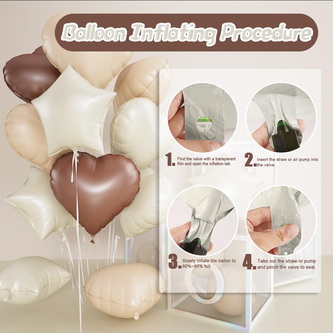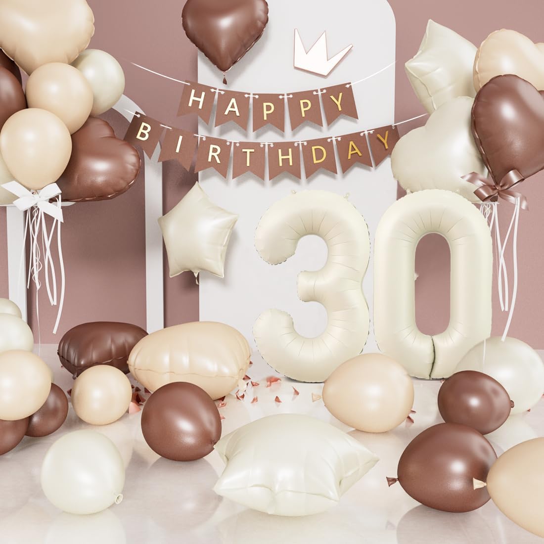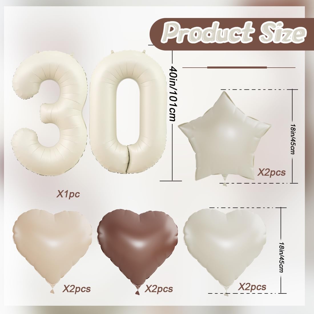 🤎 Set di palloncini beige per il 30° compleanno: include 1 palloncino con numero 30 anni da 40 pollici, 2 palloncini con cuore beige da 18 pollici, 2 palloncini con foil a cuore albicocca da 18 pollici, 2 palloncini con foil a cuore marrone da 18 pollici, 2 palloncini con foil a stella beige da 18 pollici, 1 rotolo di nastro, soddisfa le decorazioni richieste per la festa di compleanno 🤎 Il set di palloncini beige per il 30° compleanno è realizzato in materiale di alta qualità, con design autosigillante, durevole e con buona tenuta, il rotolo di nastro incluso può facilmente creare un bouquet di palloncini 🤎 La decorazione a palloncino bianco crema è molto facile da usare, facile da gonfiare, può essere riempita con aria o elio, deve fare attenzione, deve essere gonfiata lentamente, può essere gonfiata al 90%, si consiglia di non riempirla troppo. Dopo l'uso, inserisci la cannuccia nella bocca gonfiabile e premi delicatamente il palloncino per rilasciare il gas, facile da riporre e riutilizzare! 🤎 Il design coordinato dei palloncini foil a forma di cuore e stella fa sì che l'intero set di decorazioni con palloncini non sembri monotono, la tonalità beige marrone albicocca sobria e unica, è la decorazione ideale per il compleanno 🤎 Il palloncino beige 30 anni è perfetto per feste di compleanno, anniversari e altre feste. Abbiamo una varietà di set di palloncini con numeri diversi, puoi scegliere o abbinare secondo necessità per creare una decorazione di compleanno unica