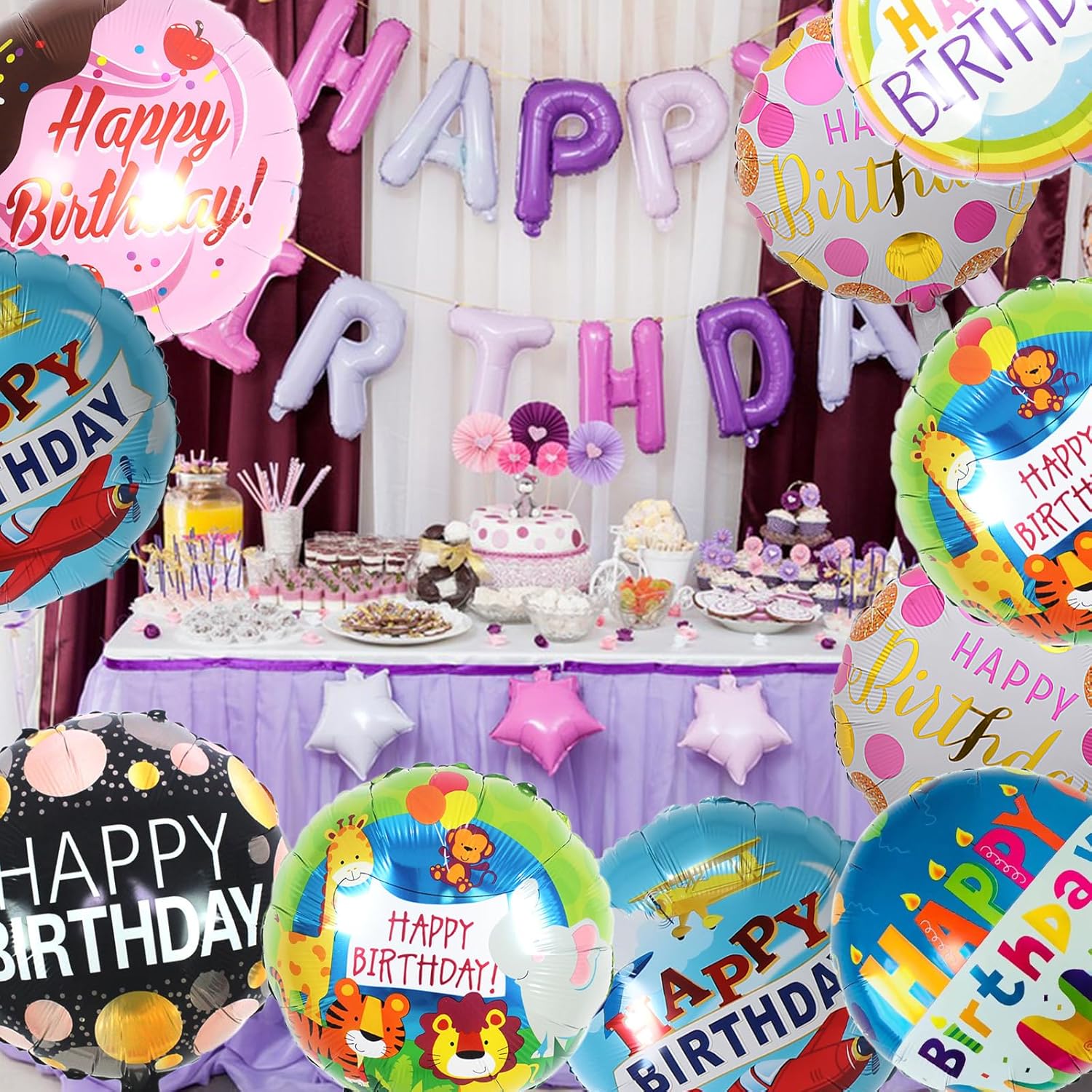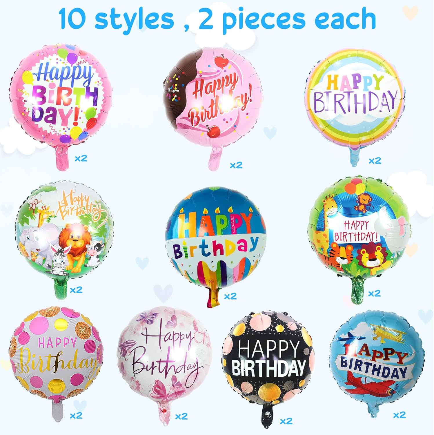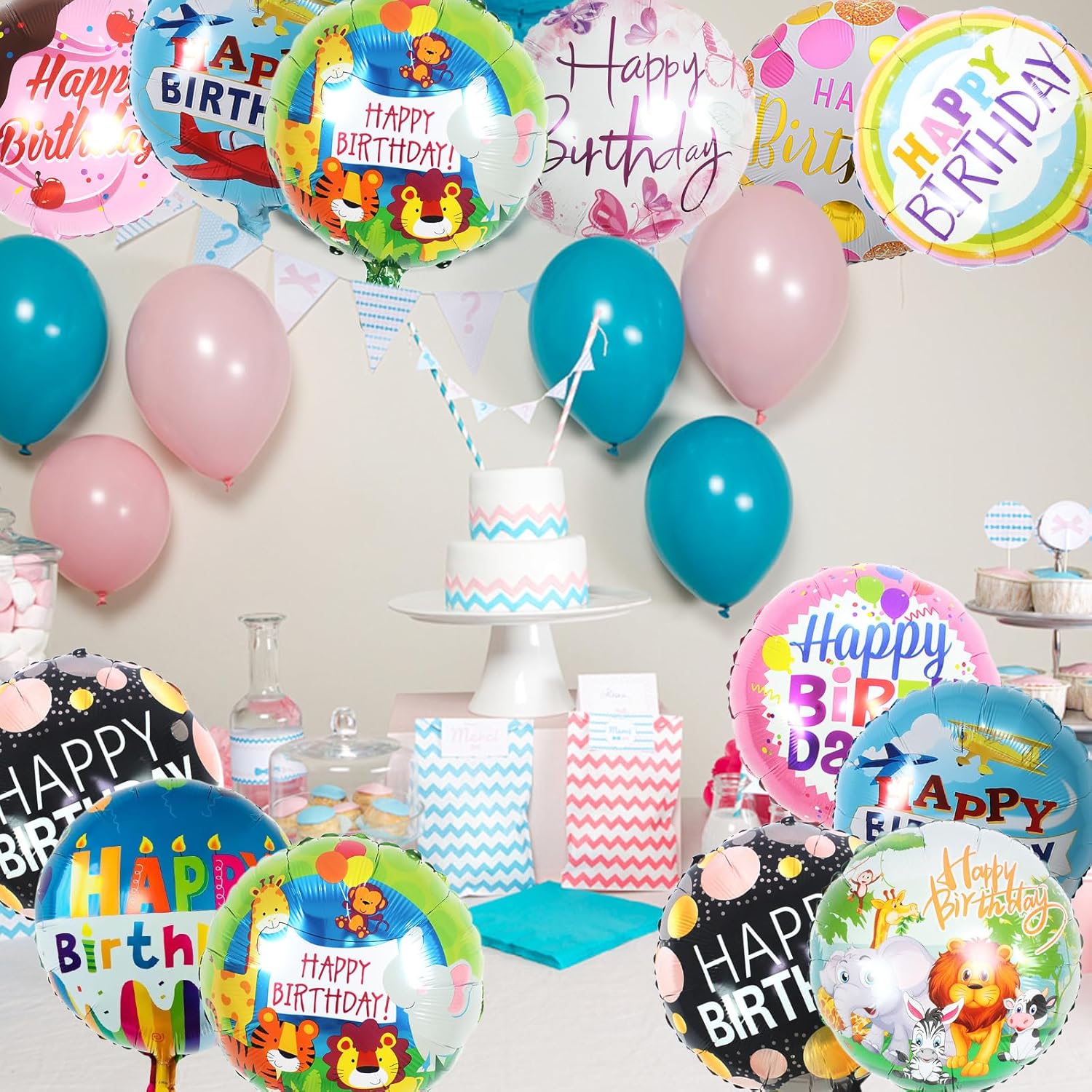【Set di palloncini in foil】 Questo set di palloncini in foil contiene 10 palloncini di compleanno rotondi (2 di ogni colore), 20 palloncini "Buon Compleanno" e 1 rotolo di nastro. Questi palloncini di compleanno creeranno ricordi indimenticabili per la tua festa. 【Palloncino Buon Compleanno】 Ogni palloncino in alluminio è stampato con la scritta "Buon Compleanno" e presenta colori vivaci che illumineranno qualsiasi spazio. Questi palloncini di buon compleanno sono perfetti per decorare il soggiorno, il corridoio o appesi al soffitto, donando un'atmosfera festosa e calda alla decorazione del compleanno di tuo figlio. 【Palloncino di buon compleanno】 I palloncini di compleanno di questo set sono leggeri e facili da maneggiare. Basta gonfiarli con una pompa ad aria o una cannuccia per una decorazione perfetta. Dopo l'utilizzo, sgonfiateli con una cannuccia e ripiegateli per riutilizzarli in future feste, rendendo ancora più pratica questa decorazione con palloncini compleanno. 【Decorazione di compleanno per bambini】 Questi palloncini di buon compleanno sono ideali per i compleanni dei bambini ma anche per le feste di famiglia. Con il loro design accattivante e la qualità durevole, aggiungono un tocco magico a qualsiasi decorazione di compleanno. Trasforma il tuo evento in una festa memorabile con questi palloncini di compleanno. 【Palloncino di compleanno】 Realizzati in alluminio, questi palloncini di compleanno sono costruiti per durare. Il loro materiale robusto permette di gonfiarli e sgonfiarli più volte, rendendoli ecologici ed economici. Scegli una soluzione di decorazione sostenibile che abbellirà tutte le tue celebrazioni.