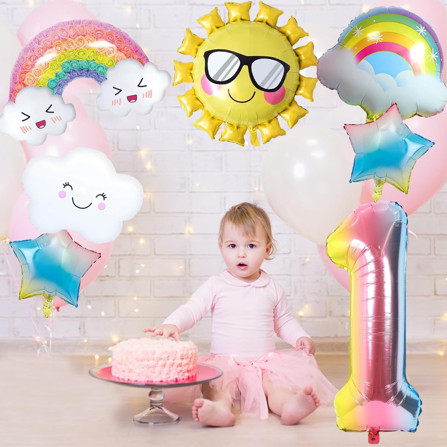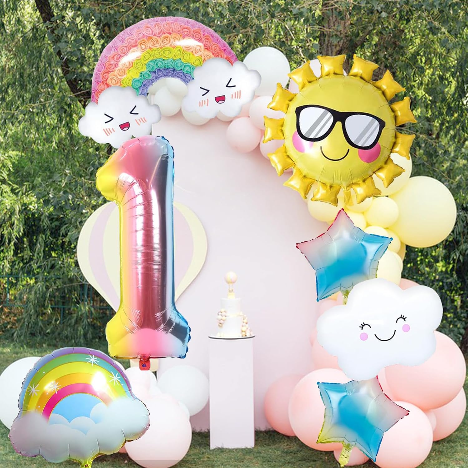 Palloncino foil arcobaleno, 7 pezzi palloncini arcobaleno decorazione compleanno bambini, sole arcobaleno stelle nuvole palloncini ragazze, palloncino arcobaleno per decorazioni feste di compleanno