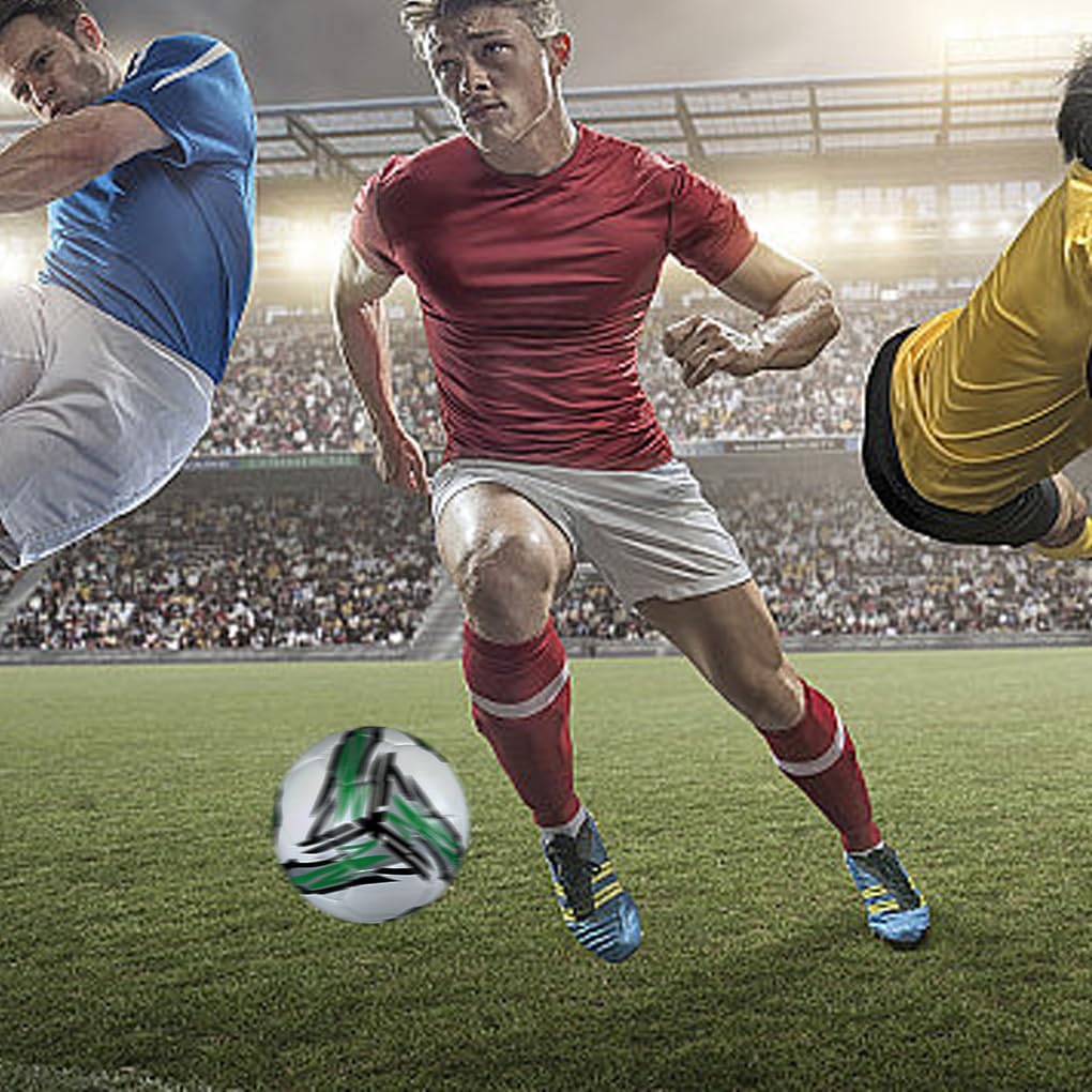 Morbido al tatto e accattivante: realizzato in PVC e PU, questo pallone da calcio presenta un tocco morbido e accattivante, rendendolo un regalo per gli appassionati di calcio Ampia applicazione e aspetto accattivante: questo pallone da calcio da allenamento è adatto a varie occasioni e ha un aspetto accattivante che attirerà l'attenzione ovunque tu giochi Resistente all'usura ed estremamente elastico: con i suoi materiali resistenti all'usura e l'elevata elasticità, questo pallone da calcio è durevole e offre un rimbalzo vivace per un'esperienza di allenamento Regali per gli amanti del calcio: questo pallone da allenamento è un regalo per gli amanti del calcio, siano essi principianti o giocatori esperti Pallone da calcio versatile per qualsiasi giocatore: che tu sia un principiante o un professionista, questo pallone da calcio è adatto a tutti i livelli di gioco e garantisce prestazioni soddisfacenti sul campo