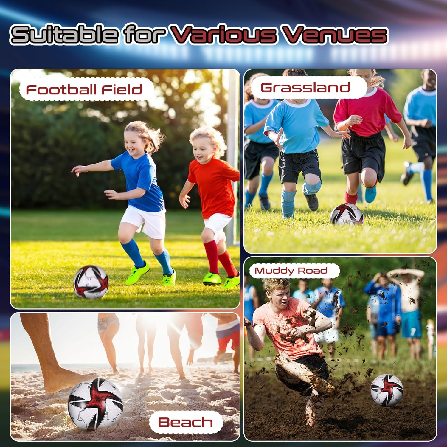 Pallone da calcio misura 5: realizzato con una morbida copertura in PVC per una facile maneggevolezza, per allenamenti e partite Camera d'aria in gomma: fornisce un'eccezionale ritenzione dell'aria, garantendo prestazioni costanti sul campo Pannelli cuciti a macchina: migliorano la durata complessiva e la durata del pallone da calcio, rendendolo duraturo Per i giocatori di calcio: che tu giochi in un campionato o semplicemente giochi per divertimento, questo pallone misura 5 è adatto a tutti i livelli di abilità Utilizzo versatile: adatto per l'uso su erba, manto erboso o superfici interne, questo pallone da calcio è una scelta versatile per qualsiasi gioco