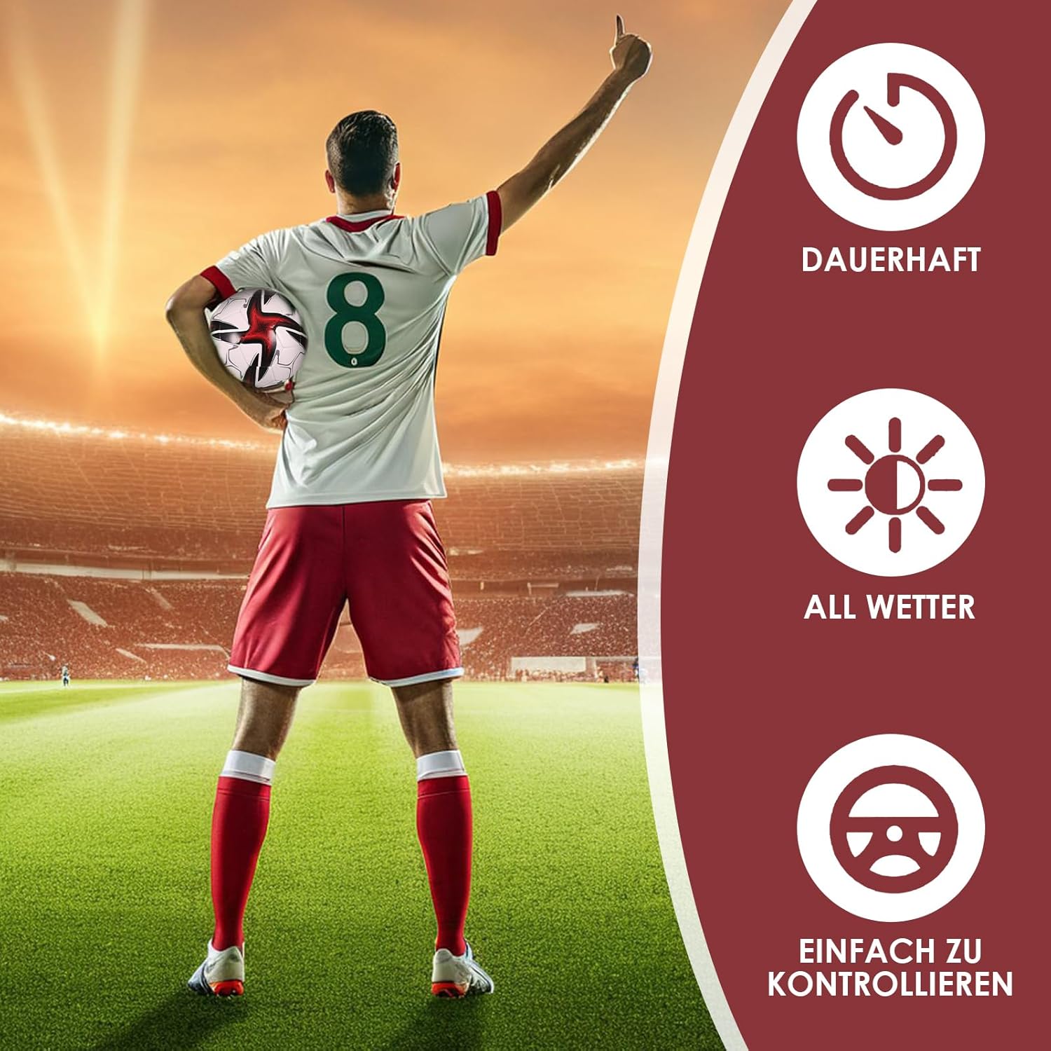 Pallone da calcio misura 5: goditi le dimensioni per i giochi e le partite ufficiali con questo pallone da calcio top Copertura in PVC morbido per una maneggevolezza fluida: la copertura in PVC morbido garantisce presa e controllo eccellenti, rendendolo adatto alle sessioni di allenamento La camera d'aria in gomma garantisce un'eccezionale ritenzione dell'aria: gioca senza preoccuparti delle perdite d'aria, grazie alla camera d'aria in gomma Pannelli cuciti a macchina per una maggiore durata: i pannelli durevoli cuciti a macchina garantiscono prestazioni di lunga durata per giochi e allenamenti intensi Allenamento per partite di campionato: che tu sia un giocatore professionista o che tu abbia appena iniziato, questo pallone da calcio è adatto per partite di campionato e sessioni di allenamento