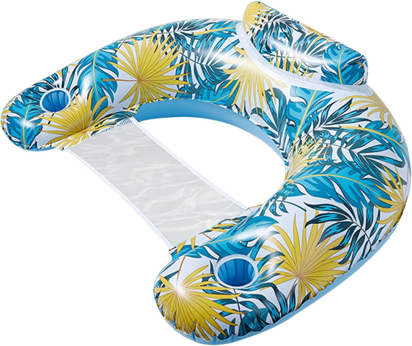 Convenient cup holder: With a two cup holder design, enjoy easy access to drinks and the convenience of replenishing moisture anytime while floating on the water. Relaxation Booster: The ergonomic head design conforms to your body for optimal relaxation, while the comfortable backrest provides good support, leaving you feeling refreshed. Wear-resistant PVC: Made with safe PVC material, our adult floating chair is sturdy and wear-resistant, perfect for endless water relaxation. Its unique hard silicone air holes leak-proof performance and full reuse. Large size design: Experience unmatched comfort with our adult floating chair's large size design, ensuring strong buoyancy and stability that resists tipping over, coupled with a robust load-bearing capacity. Poolside Comfort: Enjoy hours of relaxation with this adult floating chair, the perfect addition to any pool party! Ideal for swimming pools, beaches, lakes, rivers and more, it makes bathing in the sun a much more enjoyable experience.