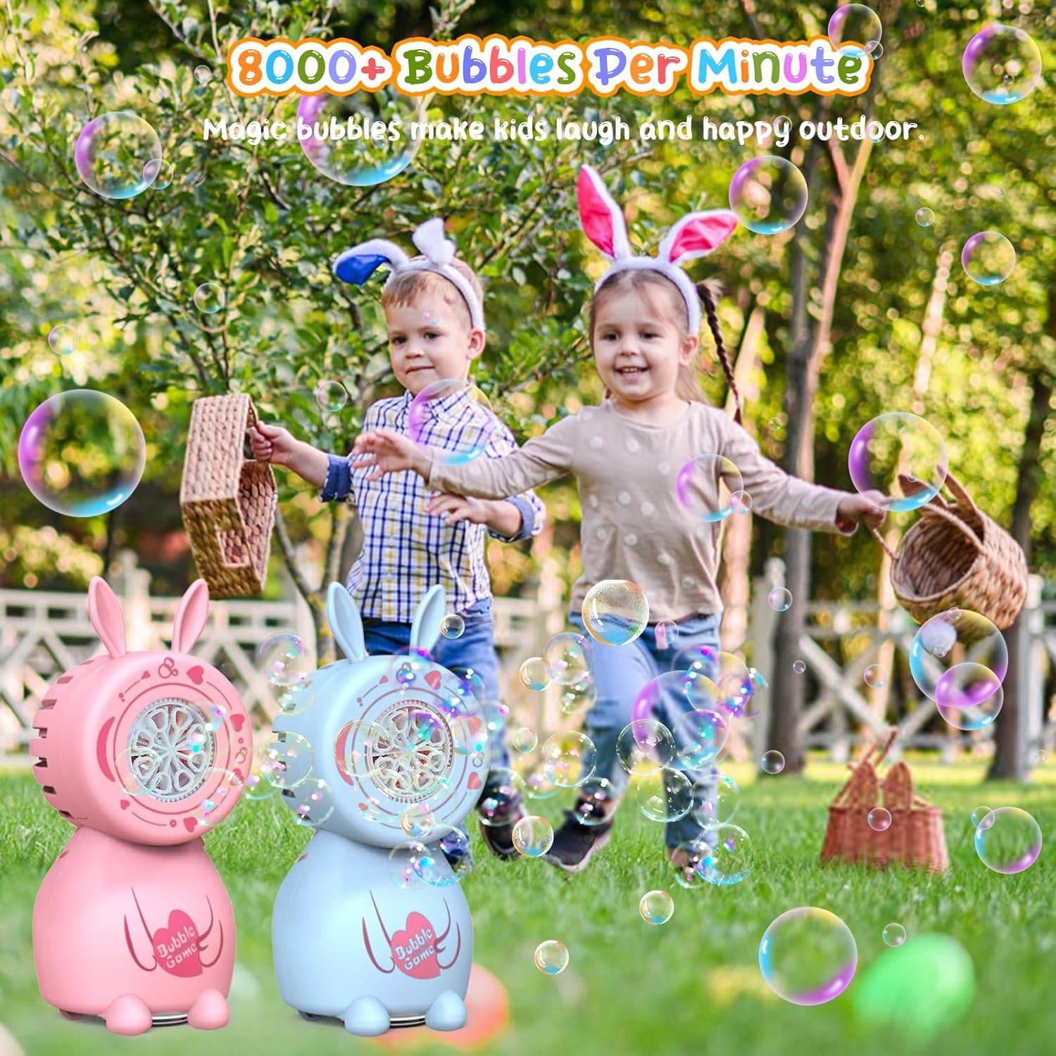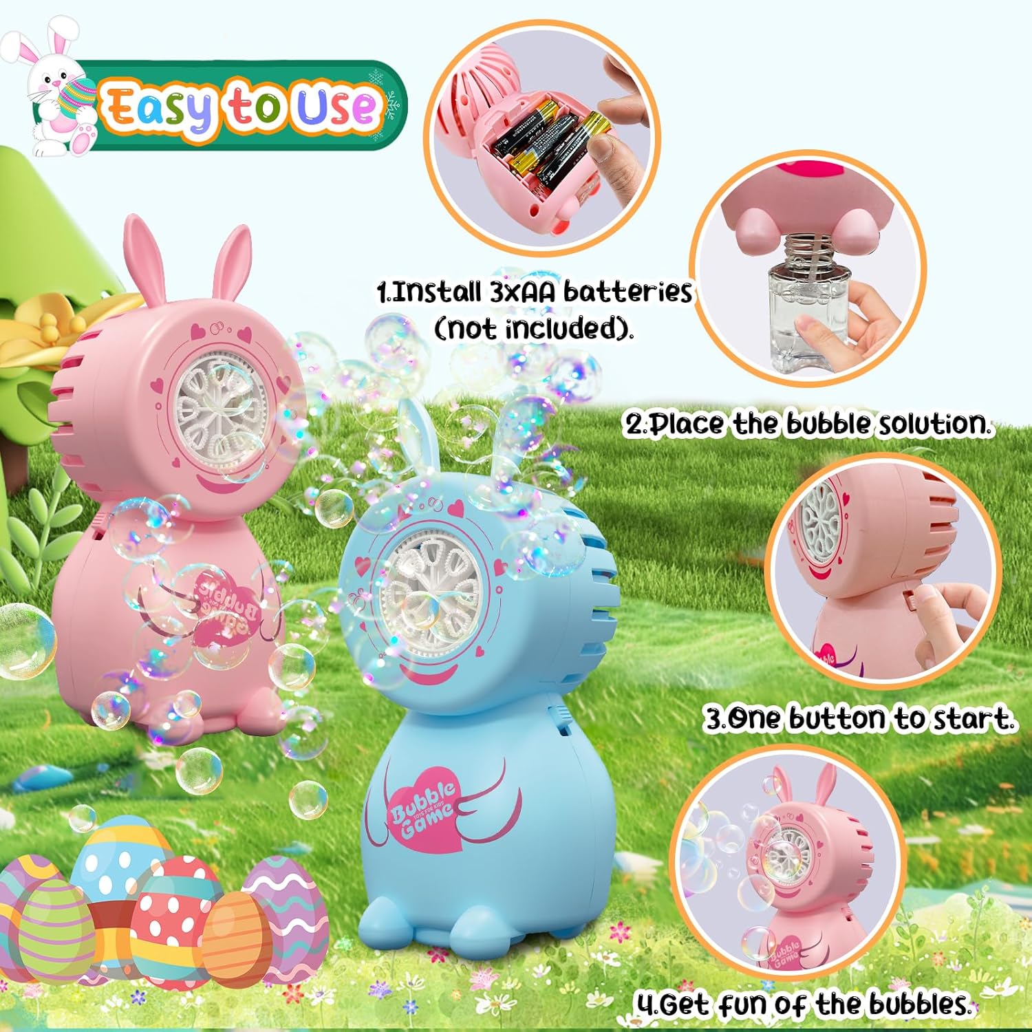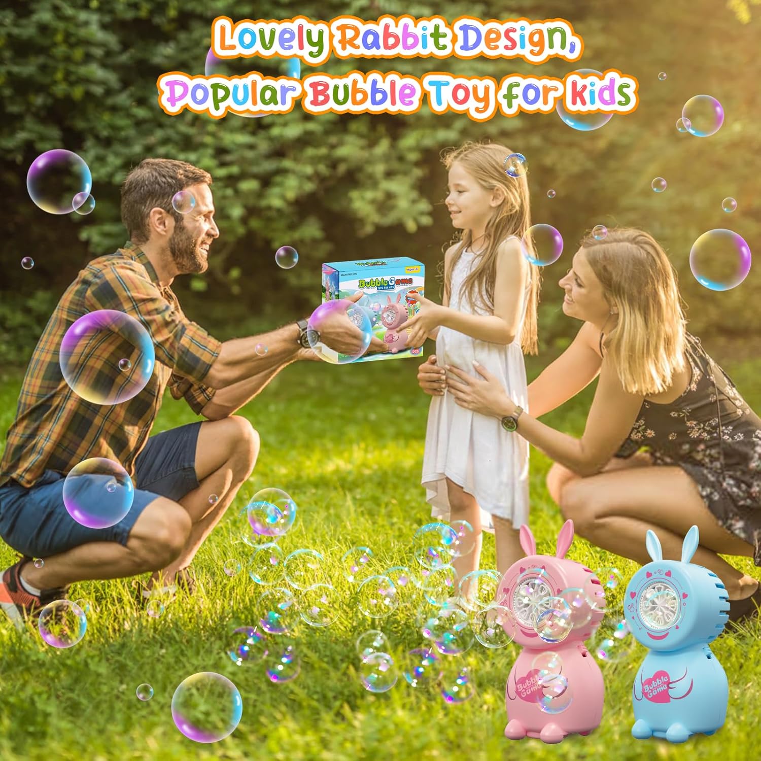 [Macchina per bolle di sapone] La macchina automatica per bolle di sapone è progettata con l'aspetto adorabile di un coniglio, la forma creativa con colori luminosi attirerà l'attenzione dei bambini e fornirà divertimento illimitato ai bambini, può espandere l'interesse all'aperto, arricchire l'immaginazione dei bambini e migliorare la coordinazione, è un regalo premuroso per bambini e bambine nelle attività all'aperto e al chiuso, festival di celebrazione della Pasqua. [Più di 8.000 bolle al minuto] La macchina per bolle di coniglio può generare più di 8.000 bolle colorate al minuto da 8 fori per bolle. Le bolle riempiranno lo spazio in breve tempo, permettendo ai bambini di immergersi completamente in un mondo di bolle da sogno e di ritrovare con gioia le innumerevoli bolle. La macchina per bolle di sapone con luci LED rende le bolle più brillanti e magiche al buio, aumentando il fascino visivo delle feste. [Lancio con un solo pulsante] Preparati per una magica esplosione di bolle! Il soffiatore di bolle portatile è completamente automatico e senza immersione. È semplice installare 3 batterie AA (non incluse) e posizionare la soluzione a bolle. La macchina per bolle viene fornita con soluzioni per bolle sufficienti (2 bottiglie e 10 sacchetti di ricarica) per goderti ore di divertimento con le bolle. [Materiale di alta qualità] Nella scelta del materiale per questa macchina per bolle, speciale per i bambini, utilizziamo il materiale ABS di alta qualità, superficie liscia senza spigoli vivi, che consente ai bambini di giocare a proprio agio, adatto a bambini e bambine di età superiore a 3 anni per giocare, godersi la bolla inseguendo la strada felice. [Giocattoli a bolle popolari per tutte le occasioni] La macchina per bolle è uno dei giocattoli a bolle più popolari in tutto il mondo. Può portare divertimento illimitato a bambini, adulti e animali domestici, e anche un ottimo creatore di atmosfera per feste di compleanno di Pasqua, matrimoni, patio, spiaggia, giochi in piscina, campeggio e altri eventi all'aperto. Prendi una saponetta per goderti molteplici piaceri.