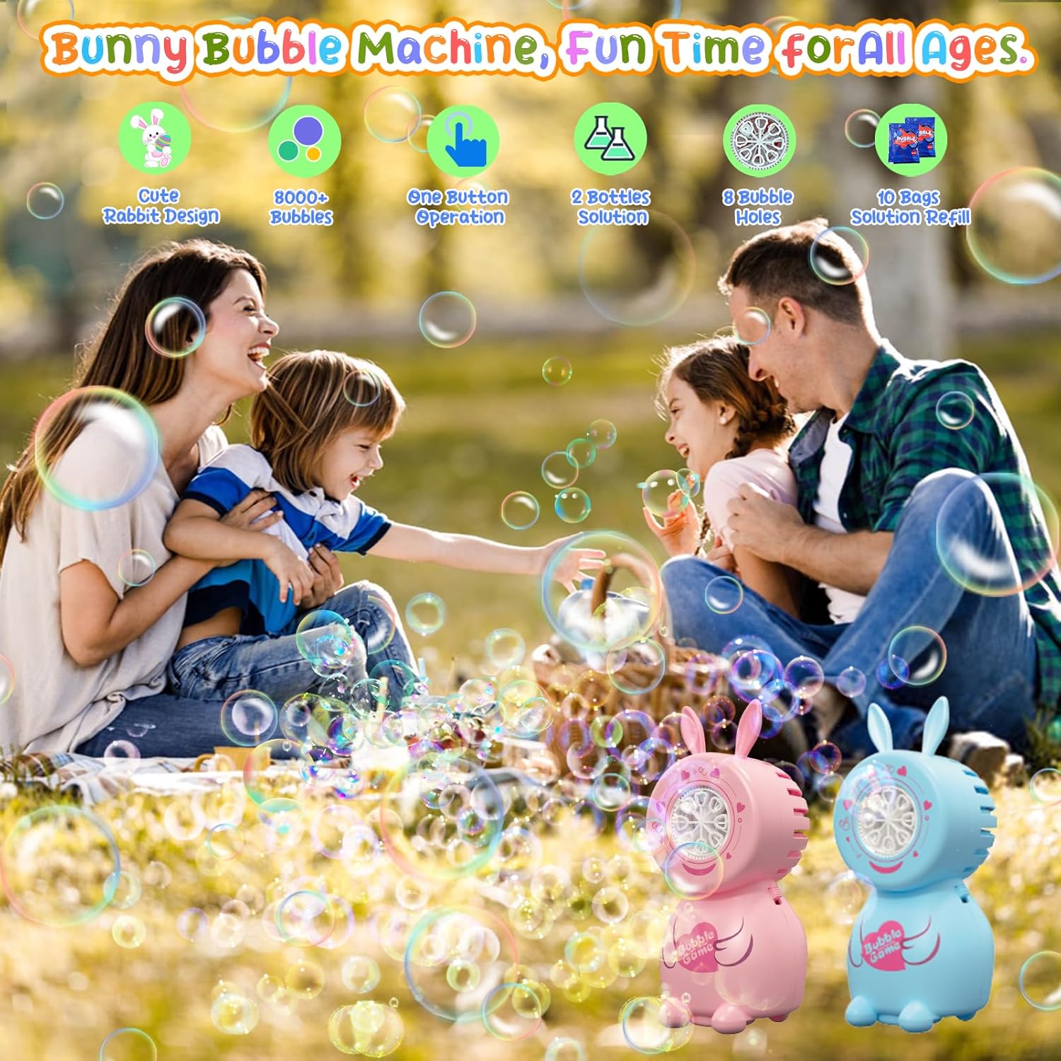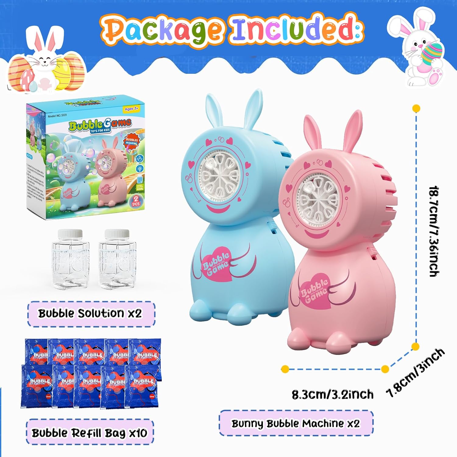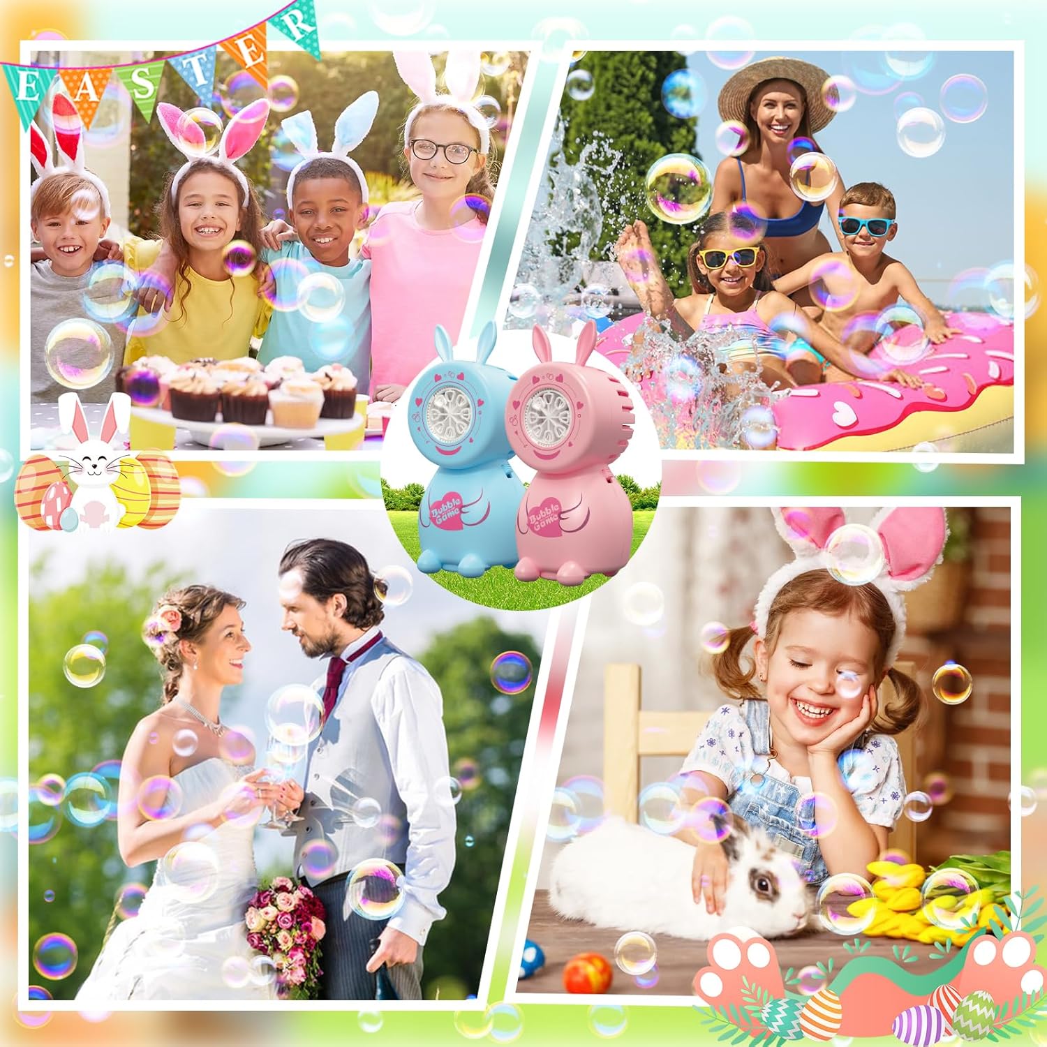 [Macchina per bolle di sapone] La macchina automatica per bolle di sapone è progettata con l'aspetto adorabile di un coniglio, la forma creativa con colori luminosi attirerà l'attenzione dei bambini e fornirà divertimento illimitato ai bambini, può espandere l'interesse all'aperto, arricchire l'immaginazione dei bambini e migliorare la coordinazione, è un regalo premuroso per bambini e bambine nelle attività all'aperto e al chiuso, festival di celebrazione della Pasqua. [Più di 8.000 bolle al minuto] La macchina per bolle di coniglio può generare più di 8.000 bolle colorate al minuto da 8 fori per bolle. Le bolle riempiranno lo spazio in breve tempo, permettendo ai bambini di immergersi completamente in un mondo di bolle da sogno e di ritrovare con gioia le innumerevoli bolle. La macchina per bolle di sapone con luci LED rende le bolle più brillanti e magiche al buio, aumentando il fascino visivo delle feste. [Lancio con un solo pulsante] Preparati per una magica esplosione di bolle! Il soffiatore di bolle portatile è completamente automatico e senza immersione. È semplice installare 3 batterie AA (non incluse) e posizionare la soluzione a bolle. La macchina per bolle viene fornita con soluzioni per bolle sufficienti (2 bottiglie e 10 sacchetti di ricarica) per goderti ore di divertimento con le bolle. [Materiale di alta qualità] Nella scelta del materiale per questa macchina per bolle, speciale per i bambini, utilizziamo il materiale ABS di alta qualità, superficie liscia senza spigoli vivi, che consente ai bambini di giocare a proprio agio, adatto a bambini e bambine di età superiore a 3 anni per giocare, godersi la bolla inseguendo la strada felice. [Giocattoli a bolle popolari per tutte le occasioni] La macchina per bolle è uno dei giocattoli a bolle più popolari in tutto il mondo. Può portare divertimento illimitato a bambini, adulti e animali domestici, e anche un ottimo creatore di atmosfera per feste di compleanno di Pasqua, matrimoni, patio, spiaggia, giochi in piscina, campeggio e altri eventi all'aperto. Prendi una saponetta per goderti molteplici piaceri.