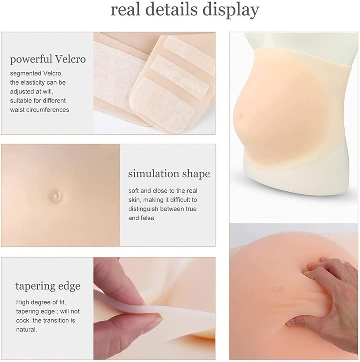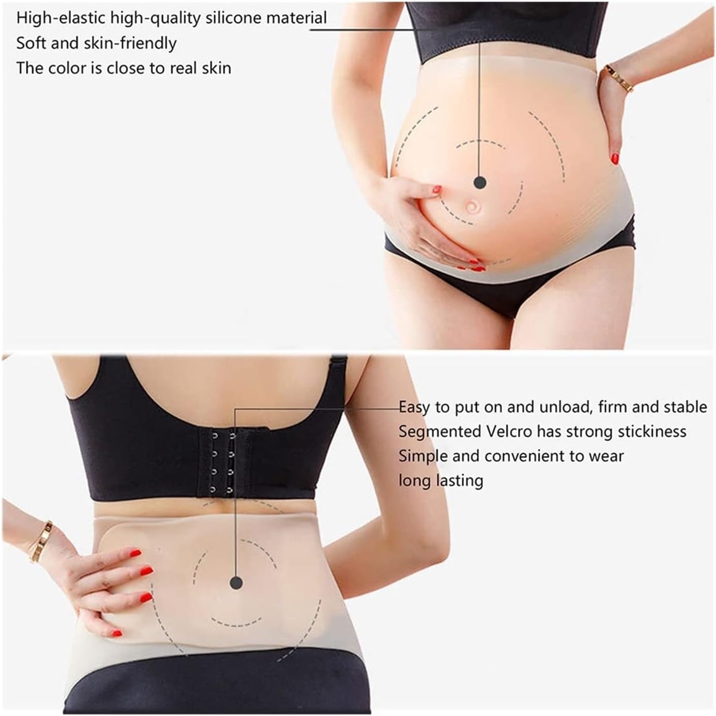 【Vestibilità Regolabile e Sicura】 Dotato di cintura in vita completamente regolabile con robuste chiusure in velcro per una vestibilità comoda e personalizzabile. Facile da indossare e da togliere, rimane saldamente in posizione durante i movimenti. 【Silicone Ultra Realistico】 Realizzato in silicone di alta qualità e sicuro per la pelle che imita l'aspetto, la sensazione e il peso di una vera pancia da gravidanza. La sua consistenza morbida e il tono naturale della pelle offrono un'esperienza convincente e confortevole. 【Leggero e Confortevole】 Il design leggero riduce la tensione, rendendolo ideale per un uso prolungato durante eventi, servizi fotografici o spettacoli. Il materiale traspirante consente un utilizzo confortevole nel tempo. 【Perfetto per Giochi di Ruolo e Performance】 Un accessorio essenziale per attori, cosplayer e creatori di contenuti. Perfetto per costumi di Halloween, produzioni teatrali, oggetti di scena per film, servizi fotografici di maternità o per sperimentare una simulazione di gravidanza. 【Facile da pulire e mantenere】 Basta pulirlo con acqua tiepida e un sapone delicato. Il resistente materiale in silicone è costruito per durare e può essere riposto facilmente quando non in uso.