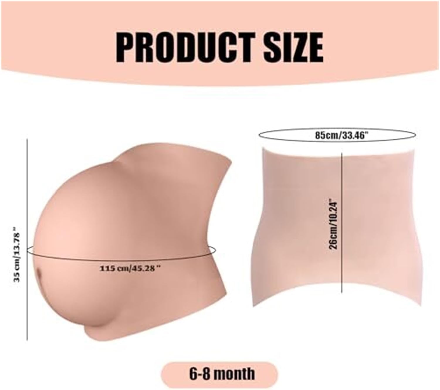 Comfort e stile realistici: realizzato in silicone ultra morbido per un aspetto naturale in gravidanza, questo pancione offre comfort per tutto il giorno, valorizzando al contempo la moda premaman o le rappresentazioni teatrali. Materiali di alta qualità sicuri per la pelle: il silicone leggero e resistente con imbottitura in seta garantisce una sensazione realistica, traspirabilità e facilità d'uso, senza irritazioni o odori. Vestibilità sicura e regolabile: le cinghie flessibili si adattano a tutte le forme del corpo, offrendo una vestibilità aderente che rimane in posizione durante i movimenti o l'uso prolungato. Essenziale per giochi di ruolo versatili: perfetto per feste in maschera, produzioni teatrali, oggetti di scena cinematografici, servizi fotografici di maternità e dimostrazioni didattiche. Silhouette autentica 6-8 mesi: i bordi affusolati imitano i contorni reali della gravidanza (circa 115 cm/circonferenza) senza deformarsi, per un look convincente.