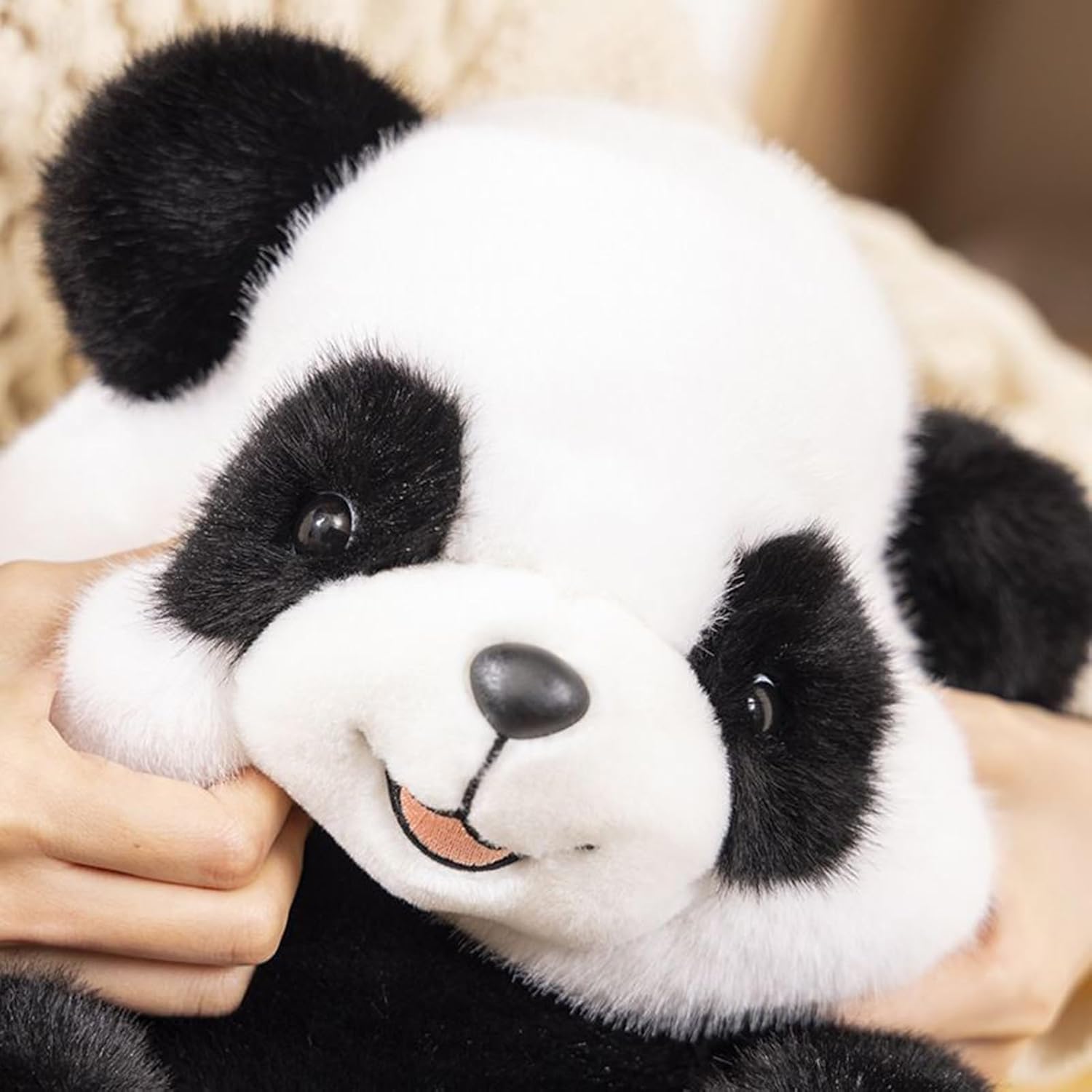 Piacevole sensazione: il morbido materiale in ratina trasmette una piacevole percezione sensoriale con fattore di morbidezza delicato sulla pelle e forma stabile Design realistico: questo peluche panda convince con una morbidezza realistica e un'espressione facciale carina. La struttura in pelliccia ricca di dettagli conferisce un aspetto realistico, che lo rende perfettamente integrato come affascinante accessorio per la casa. Sicura compagna di coccole: la struttura imbottita di supporto fornisce sicurezza, stabilizza la posizione del collo e le braccia per un rilassamento notturno continuo con una sensazione ottimale di sdraiato Regalo popolare: il simpatico panda in tessuto bianco e nero convince per il suo aspetto adatto ai bambini e diventa il regalo preferito per vacanze o compleanni: combina materiali morbidi con un aspetto affascinante Sostegno delicato alla pressione: come sedativo sensoriale, il compagno emotivo offre una benefica compensazione della pressione per ridurre lo stress e promuove esperienze di rilassamento profondo per bambini e adulti