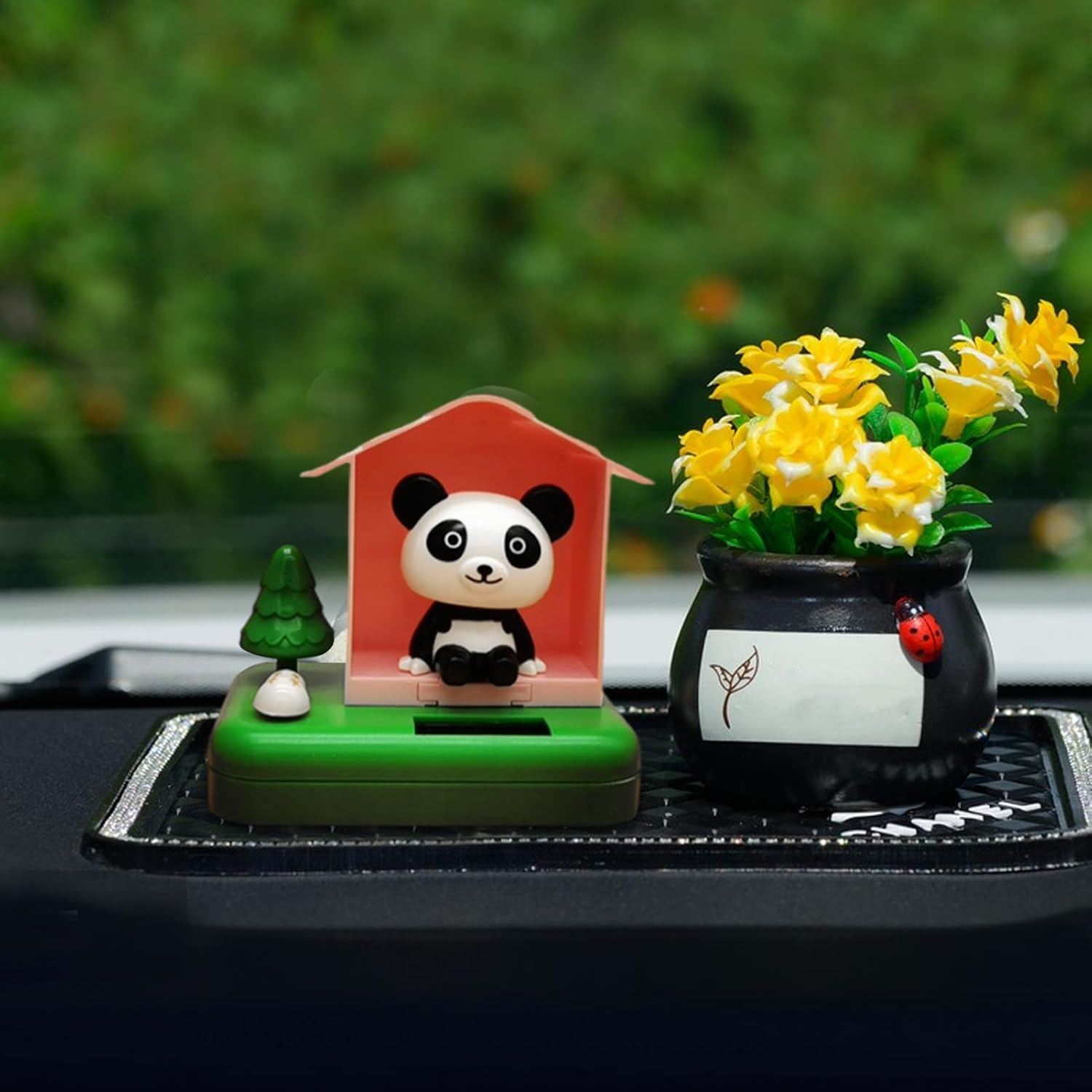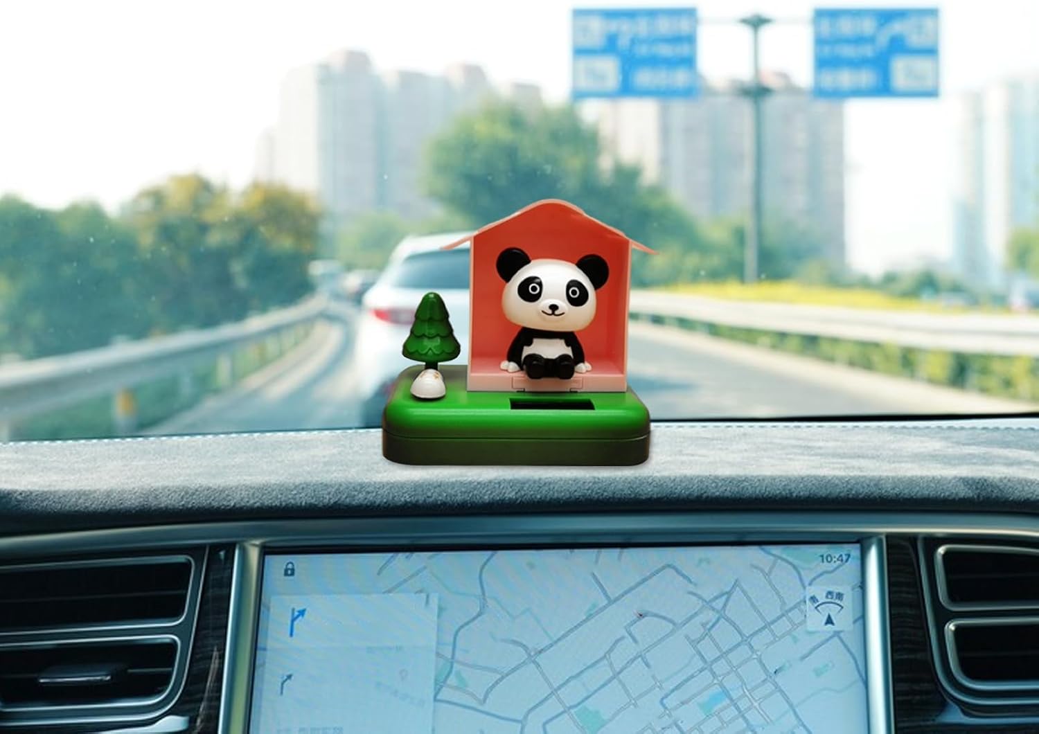 Solar Motion for Fun: This panda bobble uses built-in solar technology to shake and sway under sunlight or indoor light—bringing cheerful movement to your car or without any batteries or charging. Whimsical Design Adds Personality: With its charming cartoon panda style, this decor piece instantly adds a playful touch to your vehicle or desk, lifting your mood during traffic or while working long hours at the office. Stays Put with Reusable Base: Designed with a sturdy and reusable adhesive base, this bobble stays firmly attached to smooth surfaces like dashboards or desktops without leaving sticky when removed or repositioned. Compact and Eye-Catching Gift: Small enough to fit neatly on dashboards or bookshelves yet expressive enough to grab attention, this ornament makes a thoughtful gift for panda lovers, coworkers, students, or anyone needing a joyful visual lift. Ideal for Cars or Workspaces: Whether it’s bouncing with sunlight on a dashboard or gently shaking on a windowsill, this panda decor brightens any environment—perfect for commuters, home offices, kids’ rooms, or decorative collectors.