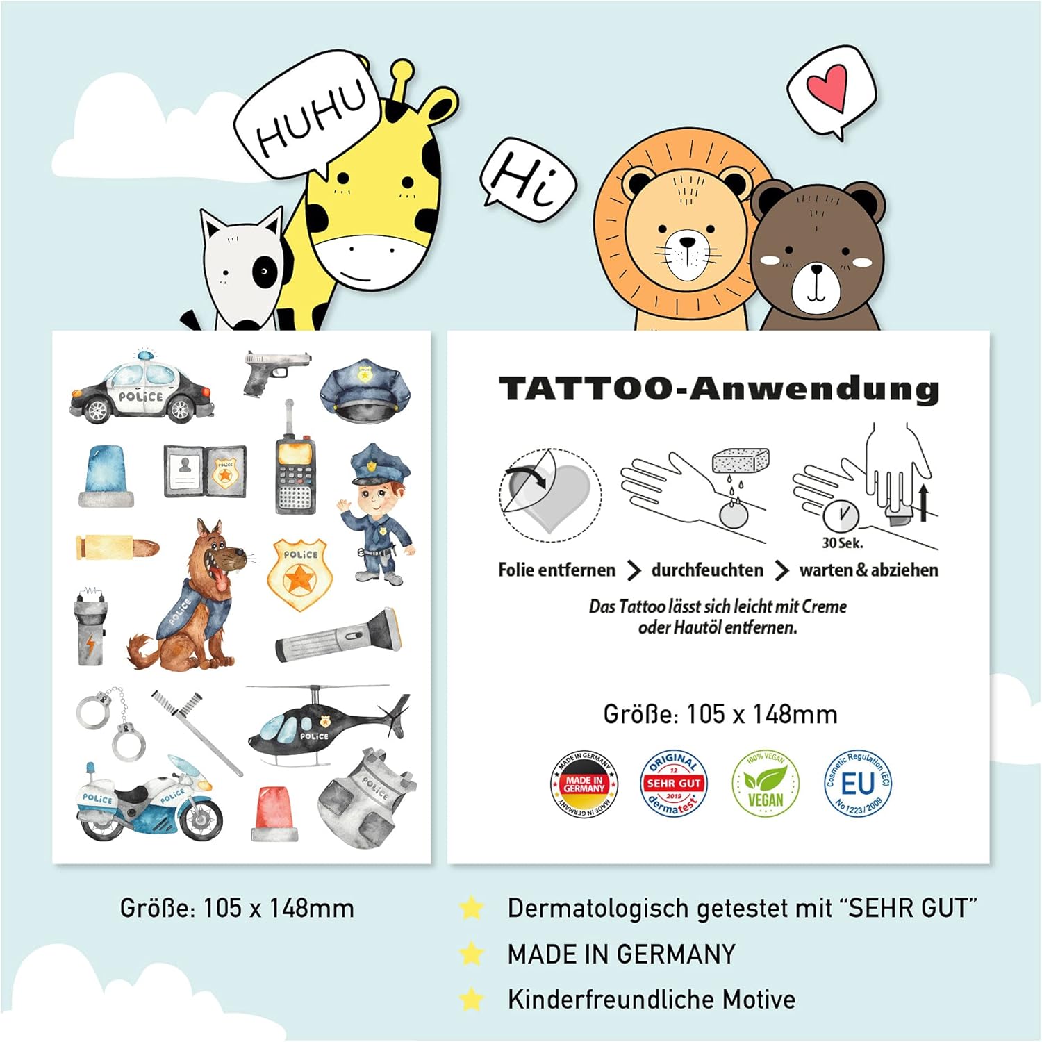 Pandawal Pandawal Tatuaggi per bambini, set da 6 pezzi, per ragazzi, polizia, fuoco, aerei, perfetti per feste di compleanno dei bambini, pensierini, tatuaggi temporanei per bambini delicati sulla pelle Tatuaggio lavabile 6 pezzi (confezione da 1)