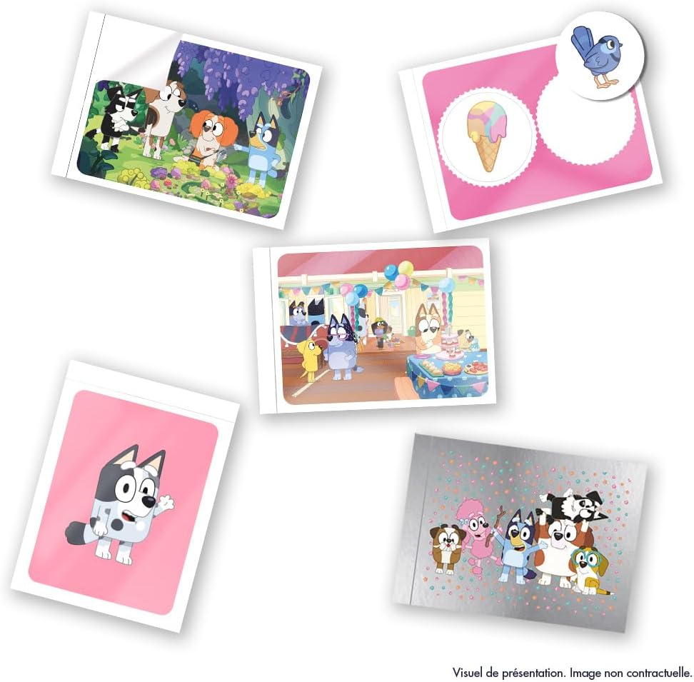 Unisciti a Bluey, Bingo e tutti i loro amici in un album di adesivi unico e divertente! Questo blister è composto da 11 buste da 5 adesivi + 4 buste in omaggio o 75 adesivi in totale. Questa collezione eccezionale ti immergerà nell'universo tenero e divertente dei tuoi personaggi preferiti grazie a 192 adesivi, tra cui 36 speciali brillanti e testurizzati, che daranno vita a ogni pagina. In questa collezione interattiva non solo scoprirai le avventure di Bluey, ma anche molti minigiochi e attività per divertirti mentre esplori il loro mondo. Ti aspetta un'avventura colorata e giocosa, pronta per essere completata per ore di divertimento indimenticabile!