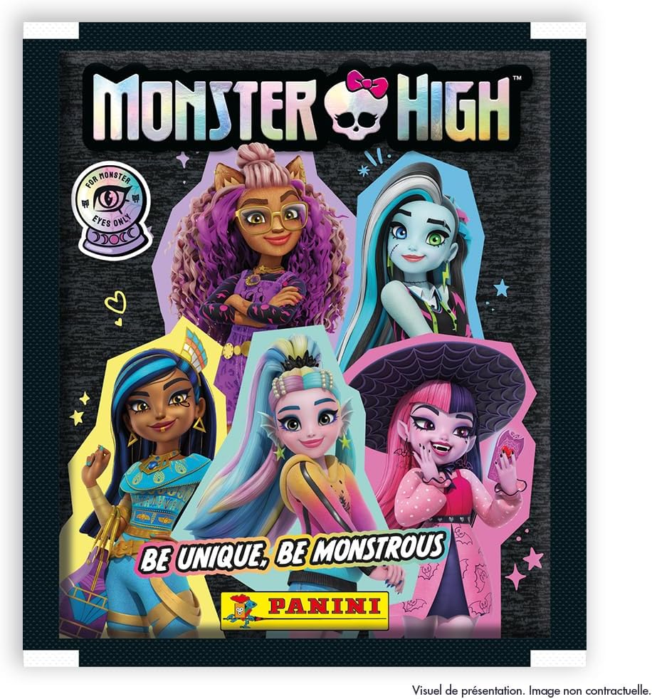 Trova Frankie Stein, Draculaura, Clawdeen Wolf, Lagoona Blue e Cleo De Nile e tutte le loro terrificanti avventure nella più mostruosa delle scuole superiori! Questa scatola da 36 buste contiene 180 adesivi. La collezione comprende 176 adesivi di cui 32 luccicanti dell'universo Monster High.