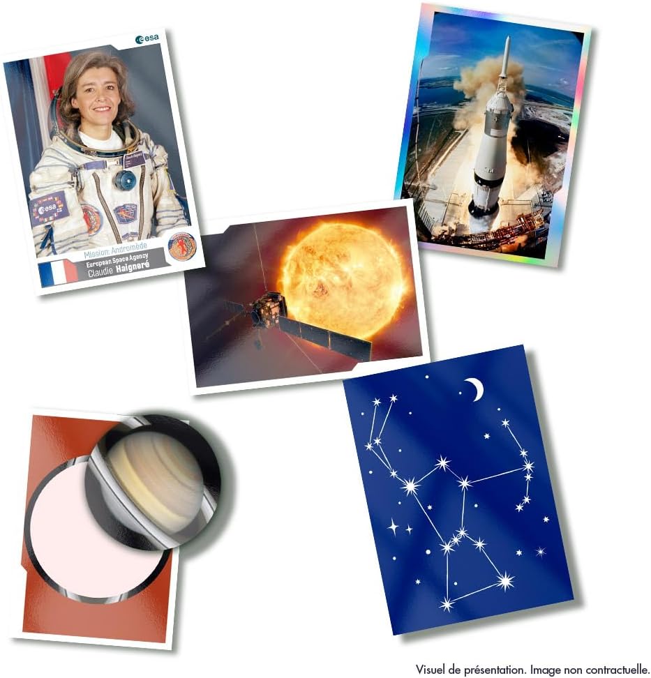 Vuoi sapere tutto sullo spazio? Questo album è fatto per te! Lì troverai le informazioni più recenti sull'esplorazione dello spazio, sull'universo, sul nostro sistema solare, sui pianeti, sulle nebulose, sulle galassie e molto altro! Questo blister da 8 tasche contiene un totale di 40 adesivi. In collaborazione con l'Agenzia Spaziale Europea. La tua missione, raccogli le 208 figurine per completare il tuo album e il tuo poster raffigurante la mappa delle costellazioni, con figurine fosforescenti!