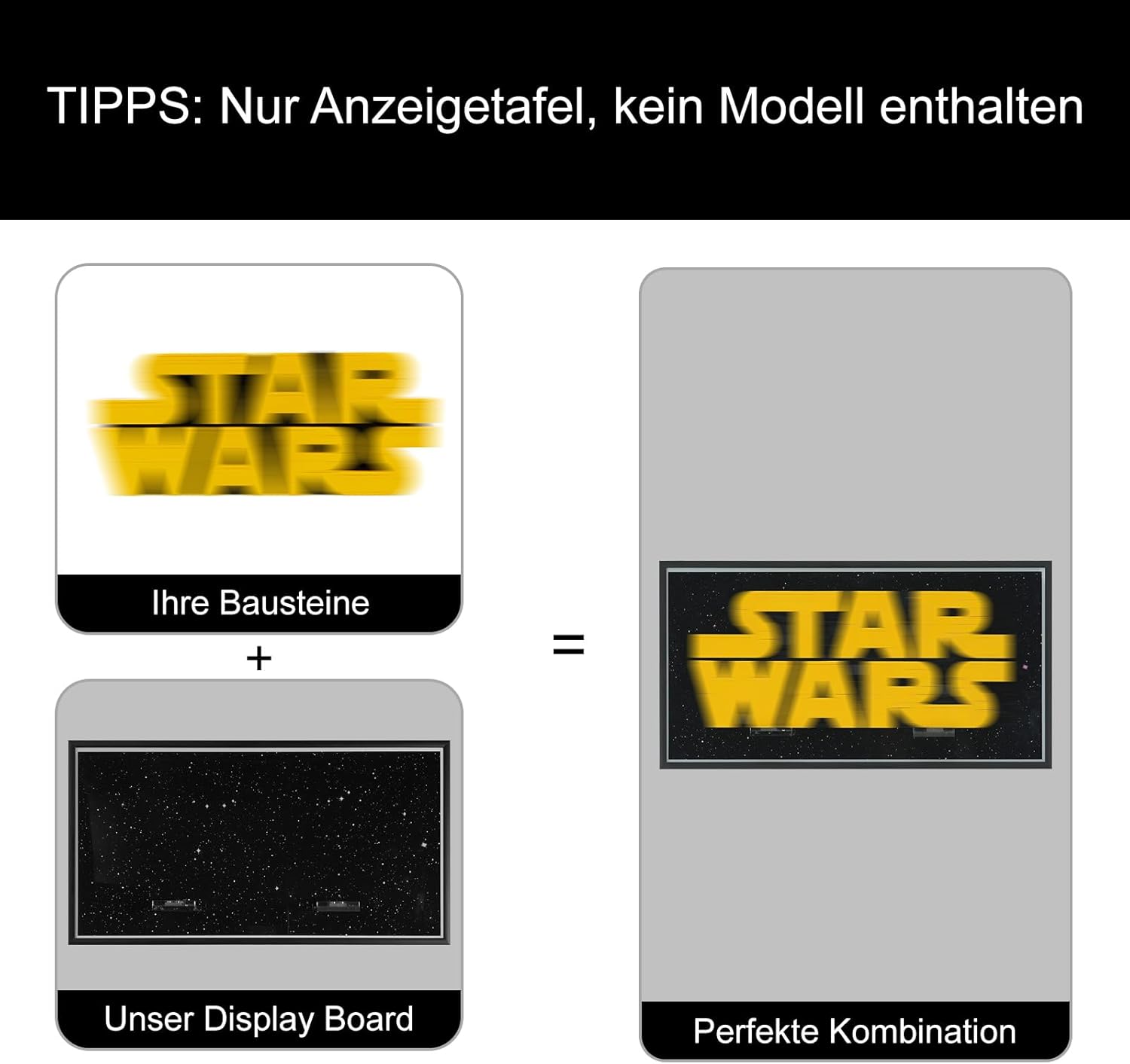 Perfetto per 75407 - Progettato appositamente per il modello con logo 75407, si adatta perfettamente al modello per garantire l'effetto di visualizzazione perfetto e fornisce lo spazio giusto per impedire efficacemente che il modello si muova o si muova. Montaggio a parete salvaspazio: libera spazio sulla scrivania o sugli scaffali montando il tuo modello a parete. Ideale per camere da letto, uffici o sale giochi, adatto anche come decorazione fantastica e alla moda. Design stabile e sicuro: il nostro pannello è dotato di un elegante telaio in lega di alluminio e un pannello acrilico trasparente che non ingiallisce facilmente ed è facile da pulire per proteggere gli oggetti da collezione dalla polvere e ridurre le radiazioni UV. Costruito con staffe a scatto, può tenere efficacemente i modelli saldamente in posizione e prevenire cadute. Regalo per gli appassionati di costruzioni: che tu sia un fan da sempre o un collezionista di modelli in erba, questo tabellone è un regalo eccellente non solo per proteggere il tuo modello da danni o polvere, ma anche per renderlo un'opera d'arte. FACILE DA ASSEMBLARE: il tabellone segnapunti può essere assemblato in pochi minuti. La confezione viene fornita con istruzioni di montaggio dettagliate e tutte le parti necessarie per un rapido montaggio a parete: non è richiesta alcuna esperienza di perforazione! Si prega di leggerli attentamente prima del montaggio. Non esitate a contattarci se avete domande.