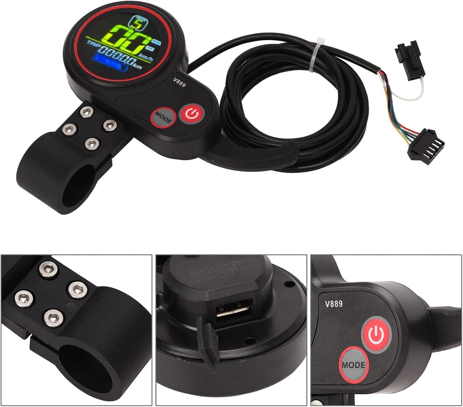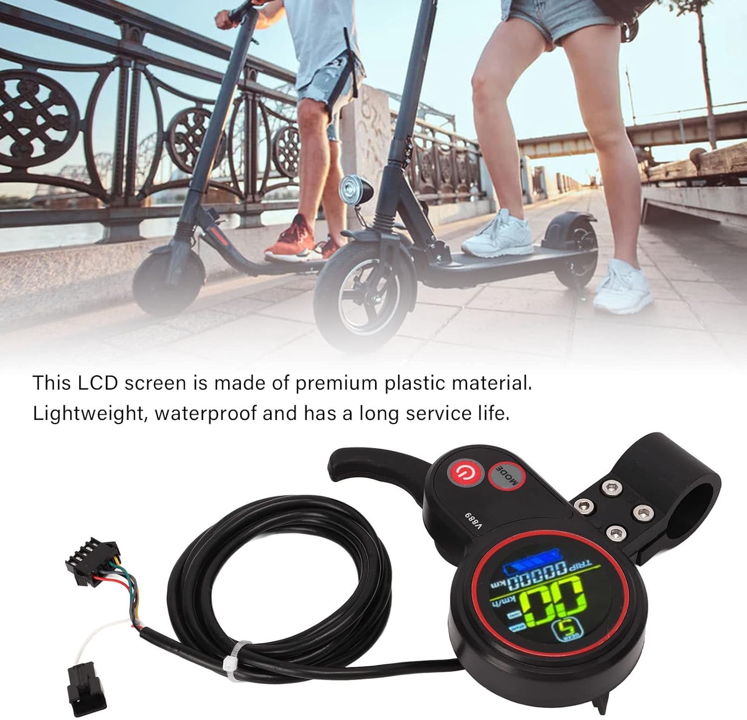 Controllo intelligente: questo display può visualizzare chiaramente lo stato di funzionamento attuale come batteria, viaggio, velocità, ecc., molto pratico. Il pannello LCD deve essere utilizzato in corrispondenza del controller del protocollo di comunicazione n. 2. Facile da installare: Viene fornito con un'interfaccia di installazione da 22,2 mm, il cruscotto è un ottimo accessorio per bici elettriche, scooter e altro Display chiaro: il display LCD trasparente semplificherà notevolmente il controllo sulla bici elettrica, migliorando notevolmente anche la sicurezza di guida Materiale Plastica: Adottando materiale plastico, l'acceleratore a pollice impermeabile per scooter elettrico ha una buona durata per un uso prolungato Facile da usare: Può anche svolgere un ruolo importante come acceleratore per scooter elettrico e l'intera operazione può essere completata con il pollice