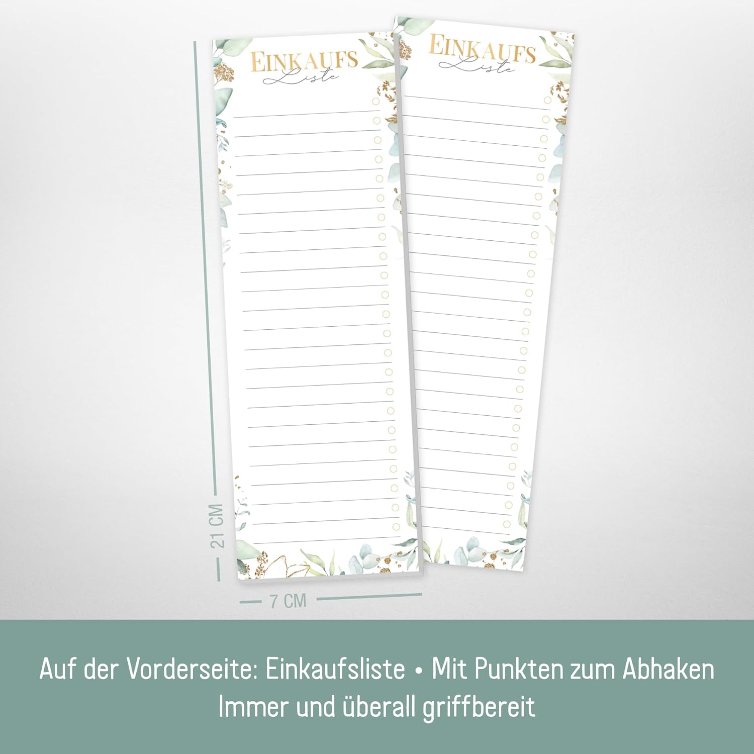 FARE LA SPESA È UN PIACERE - 50 liste della spesa della casa editrice Häfft-Verlag con magnete previsto per attaccarle al frigorifero o ad una lavagna magnetica. Ogni foglio misura 21 cm di altezza e 7,4 cm di larghezza, quindi puoi inserire grandi acquisti nella tua lista. MORE IS MORE - Sul retro c'è spazio extra per le idee dei pasti - 2 in 1: lista della spesa e programma dei pasti in uno! Inoltre, il nostro blocco è dotato di carta premium molto spessa da 100 g/m² (= 20% più spessa rispetto ad altri blocchi). FORMATO PRATICO - Formato lungo alto (7,4 x 21 cm) né troppo grande né troppo piccolo, sta in tutte le tasche. Il magnete fornito (nota: niente neodimio) può essere semplicemente attaccato al retro del blocco, se necessario. FORGET, CGolden Sheet, To Go in borsa o nello zaino, non dimenticherai mai più di fare acquisti importanti! SOSTENIBILE E RISPETTOSA DEL CLIMA - Organizza i tuoi acquisti quanto vuoi e con la coscienza pulita: per il foglio ambientale, la nostra carta è certificata FSC (FSC N004440) e stampata nel rispetto del clima.