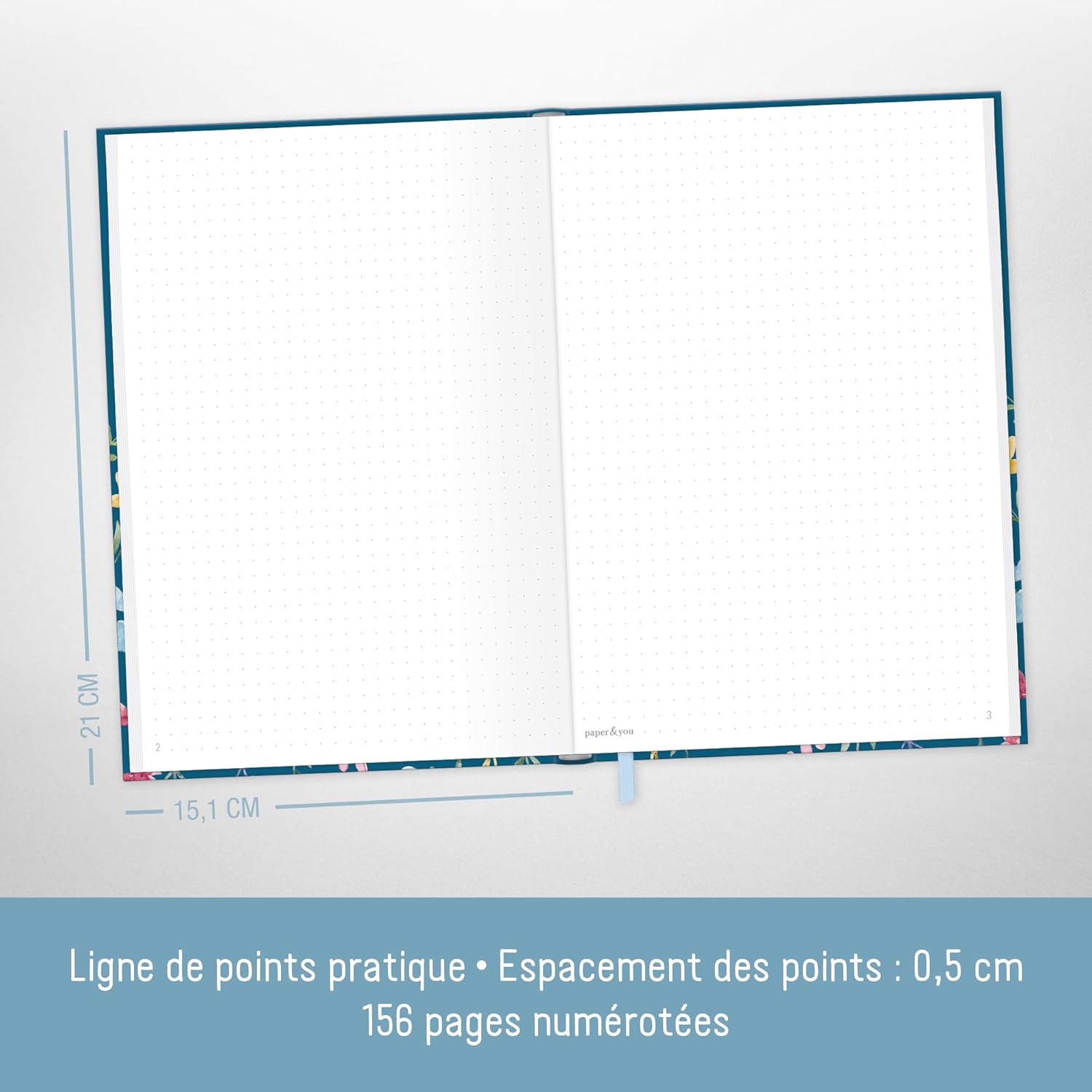 Elegante taccuino A5 a pois - della Häfft-Verlag con nastro da lettura ed elastico per bullet journaling, obiettivi, scritte a mano, schizzi, progetti e pensieri - sempre con te e a portata di mano quando colpisce un lampo di genio! SOSTENIBILE E RISPETTOSA DEL CLIMA - Sii creativo quanto vuoi pur avendo la coscienza a posto: per amore dell'ambiente, la nostra carta premium da 100 g/m² è certificata FSC (FSC N004440) e stampata in modo rispettoso del clima. IL TUO COMPAGNO FEDELE - La copertina flessografica, flessibile e resistente, combina le migliori caratteristiche della copertina rigida e della copertina morbida, è resistente agli schizzi e cancellabile. L'intricata rilegatura a filo tiene insieme le pagine in modo sicuro. FAI UN REGALO A TE STESSO E AGLI ALTRI - Ideale per i principianti o come regalo carino, questo diario chic ti fa venire voglia di posare lo smartphone e tirare fuori la penna! MOLTI DISEGNI DIVERSI - ce n'è per tutti i gusti e bello da collezionare: diario con 156 pagine numerate nel pratico formato A5 (15 x 21 cm), distanza tra i punti: 0,5 cm.