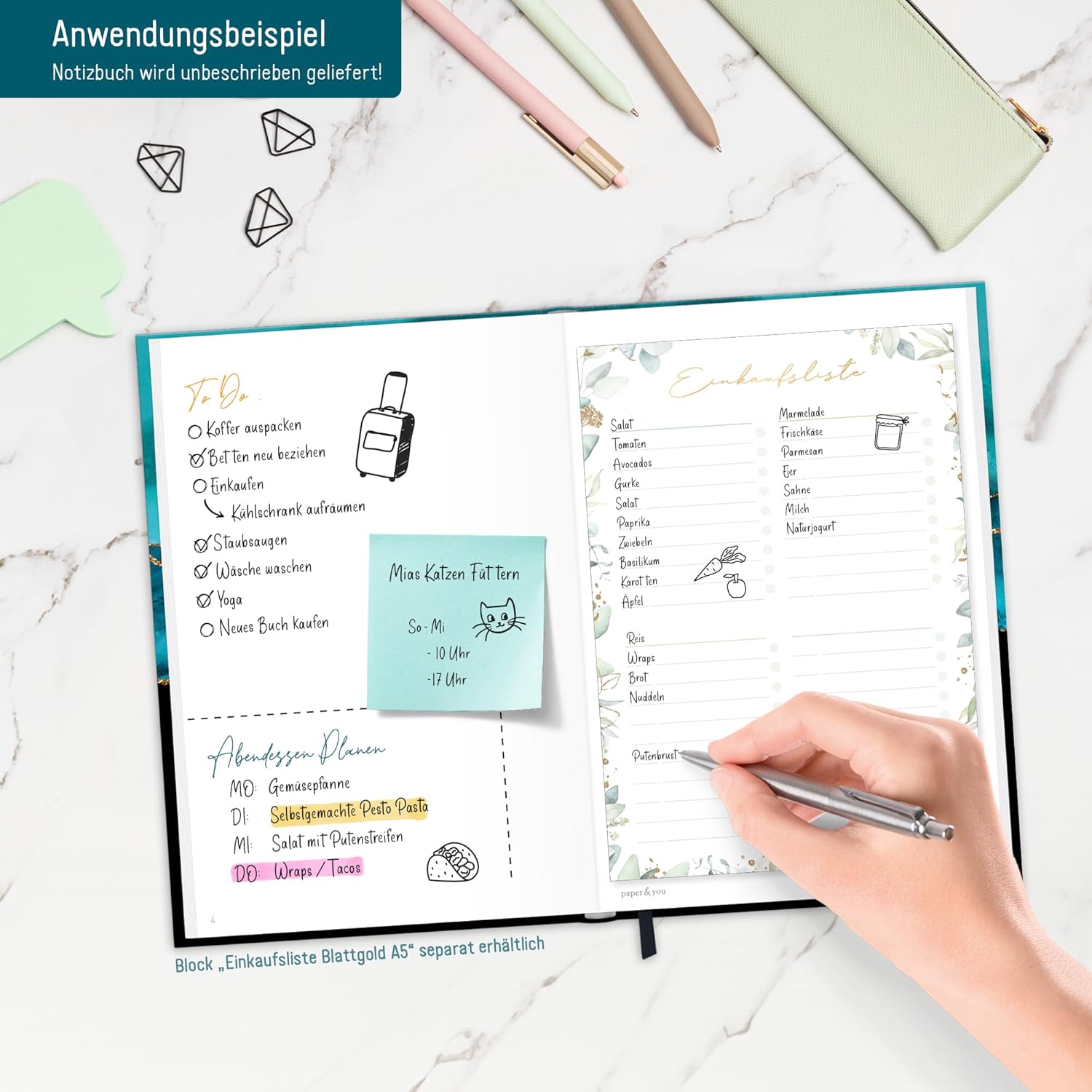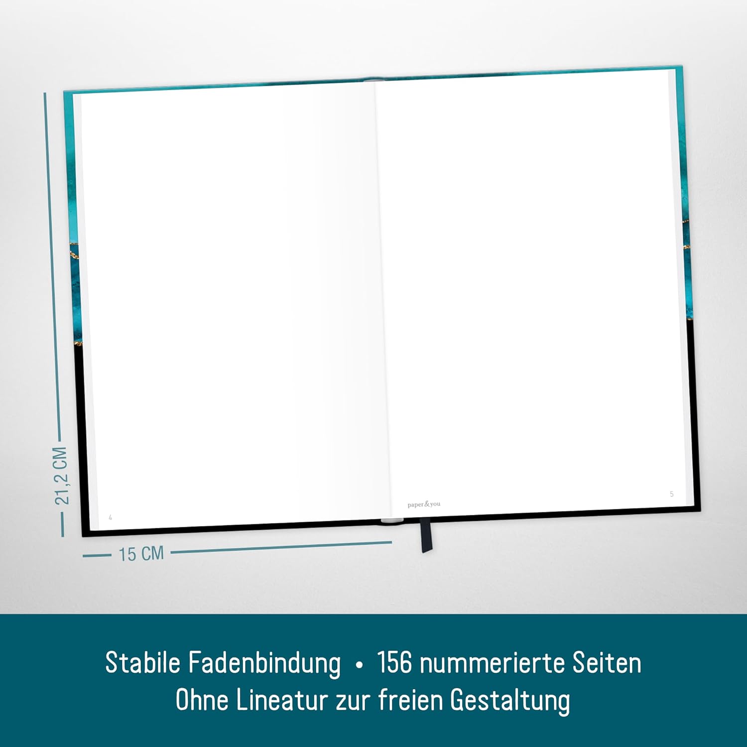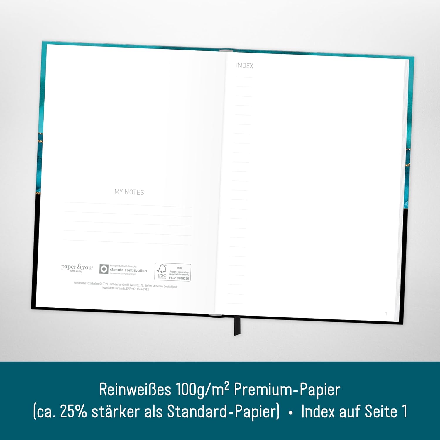 NOTEBOOK A5 BIANCO - Della Häfft-Verlag, leggermente più grande dell'A5 (15,7 x 21,7 cm), con un pratico elastico per chiuderlo e un nastro da lettura per segnare le pagine. Libro per prendere appunti di ogni tipo, schizzi, disegni, obiettivi, progetti e pensieri! SOSTENIBILE E RISPETTOSA DEL CLIMA - Prendi appunti con la coscienza pulita: per l'ambiente, la nostra carta premium da 100 g/m² è certificata FSC (FSC N004440) e stampata nel rispetto del clima. UN COMPAGNO FEDELE - La copertina flexo combina il meglio della copertina rigida e della copertina morbida: è robusta, flessibile, resistente agli schizzi e cancellabile. La resistente rilegatura a filo tiene insieme le pagine in modo sicuro. FAI UN REGALO A TE STESSO E AGLI ALTRI - Ideale per uso personale o come simpatico regalo per i tuoi cari: questo quaderno molto chic ti farà venir voglia di posare lo smartphone e tirare fuori la penna! DIMENSIONI PRATICHE - Il quaderno bianco è leggermente più grande del formato DIN A5 (copertina: 15,7 x 21,7 cm; interno: 15 x 21,2 cm). È quindi possibile inserire ordinatamente fogli A5 staccati o fogli A4 piegati.