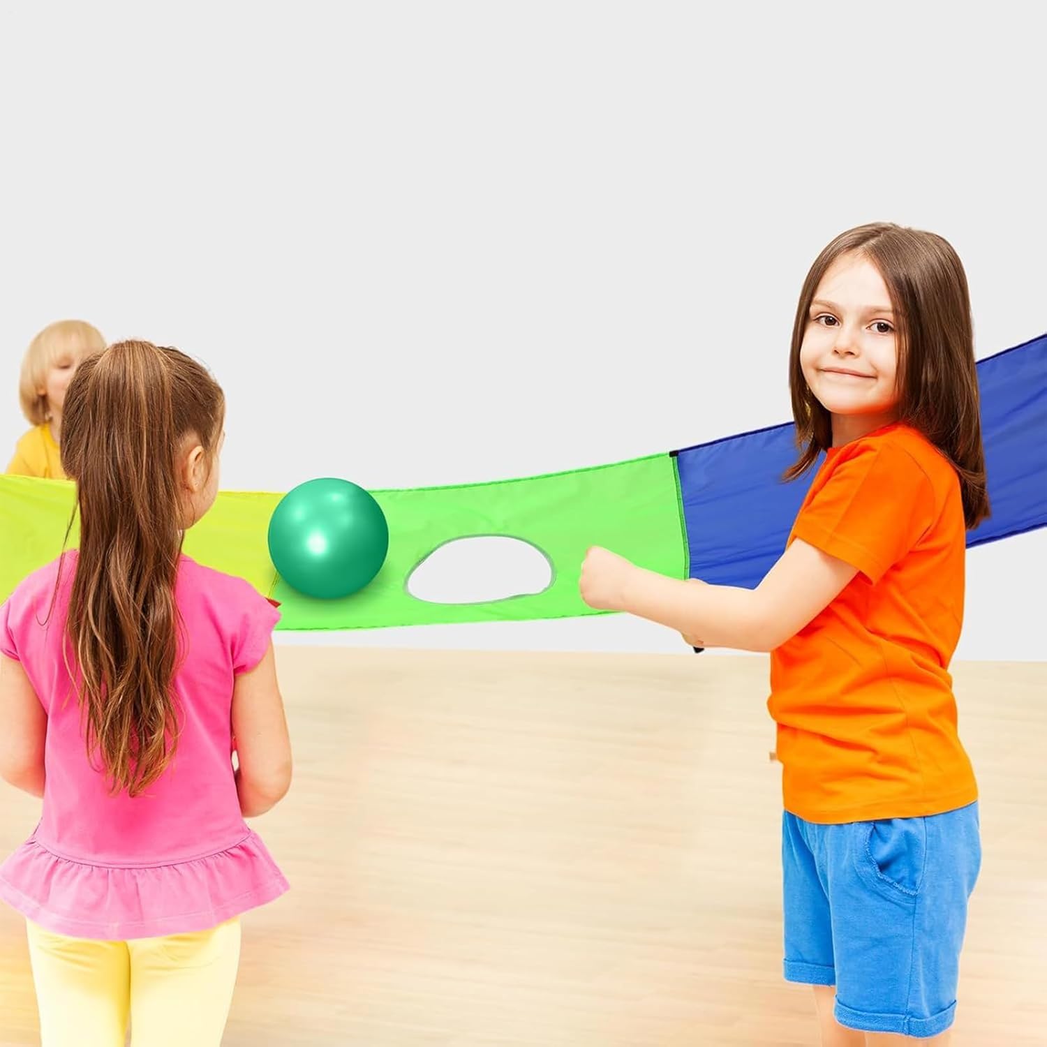 Costruzione Resistente Antistrappo: Caratterizzato da fibre antistrappo e manici , questo paracadute in tessuto Oxford ad alta densità con design impermeabile assicura affidabilità durante frequenti attività di gioco vivaci. Design Colorato: Tema brillante abbinato a 16 maniglie supporta la concentrazione e accende la creatività, offrendo divertimento versatile grazie all'esclusiva struttura a doppio foro per attività ricreative. Adatto all'Esterno: Progettato per uso esterno durante attività scolastiche ed eventi sportivi, questo paracadute per bambini incoraggia interazioni attive divertenti, rafndo le capacità di lavoro di tra bambini e famiglie Abilità Fisiche Potenziate:Promuove la della parte superiore del corpo grazie a coinvolgenti azioni di lancio e afferraggio della palla, migliorando allo stesso la coordinazione con il paracadute e la velocità di reazione. Allena lo sviluppo del pensiero strategico in un ambiente di gioco interattivo e divertente. Attività collettive: Progettato per interazioni multi-, il paracadute verde facilita azioni di lancio e passaggio che stimolano la collaborazione e consolidano la coesione di gruppo in un ambiente di gioco all'aperto coinvolgente