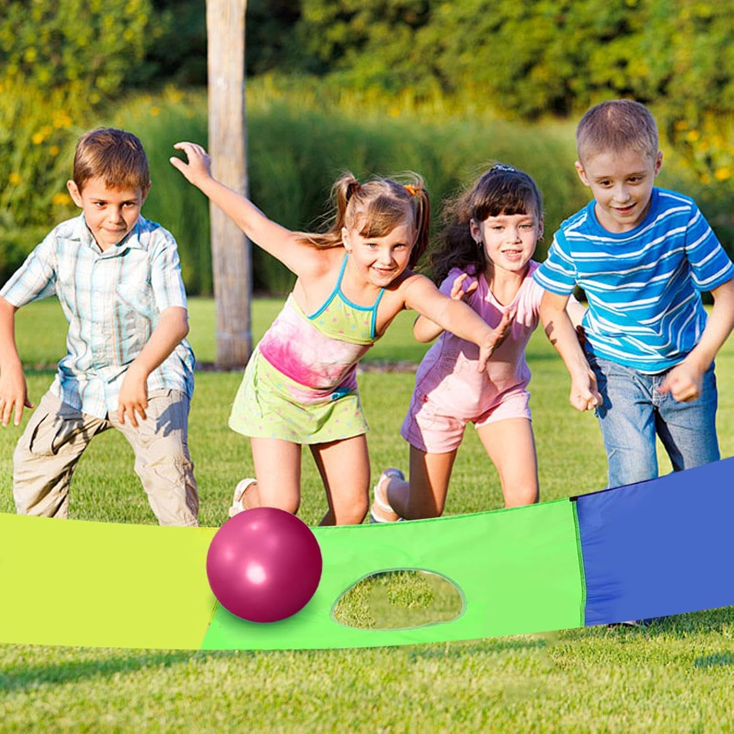 Tessuto Impermeabile Robusto: Progettato con tessuto Oxford ad alta densità e struttura impermeabile, il paracadute integra manici rinforzati e fibre antistrappo per prestazioni durature durante usi ripetuti in vari ambienti di gioco. Design Visivo Migliorato: Colori arcobaleno brillanti e 16 maniglie stimolano concentrazione e creatività, ideale per giochi interattivi. La struttura a doppio foro garantisce versatilità e divertimento aggiuntivo durante le attività dinamiche per bambini. Esperienza Dinamica: Offre un'esperienza coinvolgente con il paracadute gioco, ideato per giochi di gruppo all'aperto in scuole o eventi sportivi, migliorando la partecipazione infantile e l'impegno familiare in contesti ricreativi interattivi Miglioramento Capacità Fisiche:Rinforza i muscoli della parte superiore del corpo, affina la velocità di reazione tramite azioni coordinate di passaggio della palla sotto il paracadute. Sostiene il pensiero strategico e migliora la reattività fisica generale in un contesto piacevole. Divertimento collaborativo: Le azioni dinamiche con il paracadute verde favoriscono l'interazione tra più bambini, incoraggiando il gioco di e l'esperienza di coesione durante attività ricreative interattive per gruppi