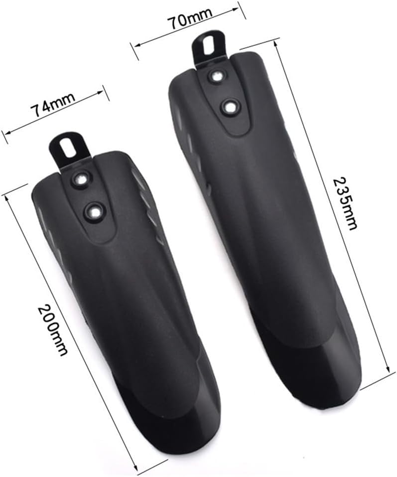 Kit anteriore e posteriore: set di 2 parafanghi per biciclette per bambini da 12 a 20 pollici, include protezioni anteriori e posteriori con viti di montaggio per una rapida installazione sulle biciclette per bambini Protezione in PVC di lunga durata: realizzato in materiale plastico PVC che offre un'elevata resistenza all'acqua fangosa e all'invecchiamento per un uso quotidiano affidabile su corse all'aperto Design facile da installare: dotato di un meccanismo di caricamento e scarico rapido che semplifica il fissaggio e la rimozione mantenendo una vestibilità sicura durante il ciclismo Adatto per giovani piloti: dimensioni specifiche per modelli di bambini tra 12 e 20 pollici di copertura dove necessario senza interferire con il movimento della ruota Finitura nera con vestibilità pratica: il colore nero elegante si abbina alla maggior parte degli stili di bici, mentre le supercies antirughe e resistenti alle pieghe forniscono un aspetto pulito anche in condizioni di bagnato