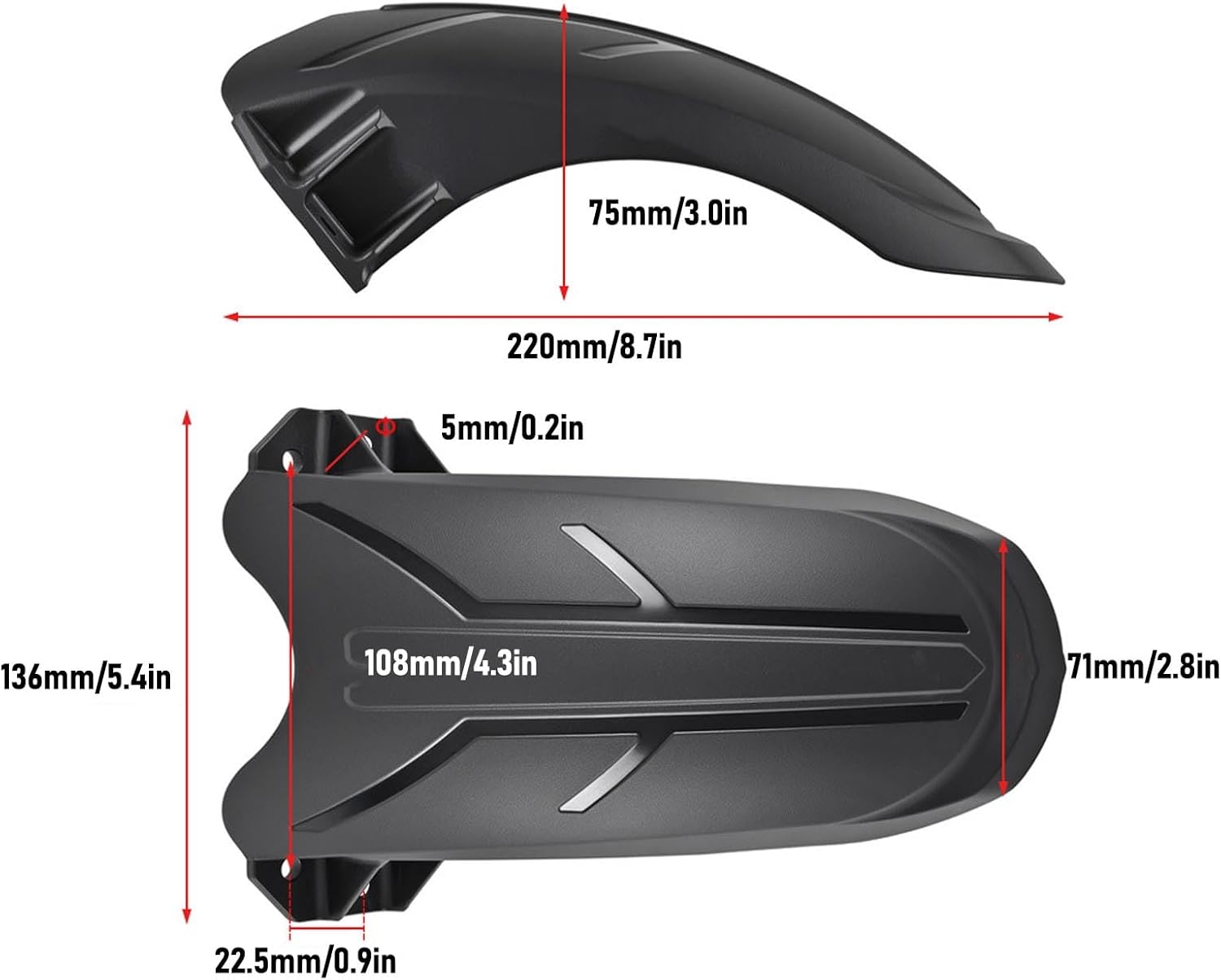 [Costruzione in plastica] Realizzato in plastica, il parafango dello scooter elettrico è robusto e resistente all'usura. offre una protezione affidabile contro l'usura quotidiana garantendo prestazioni di lunga durata. [Design personalizzato] Oltre alla sua funzione protettiva, il parafango per scooter elettrico aggiunge un tocco di personalizzazione e stile al tuo scooter elettrico. migliora l'aspetto generale della tua corsa rendendola più distintiva ed elegante. [Installazione semplice] Questo parafango per scooter elettrico è progettato per comodità consentendo un rapido e non sono necessari strumenti o competenze professionali rendendolo accessibile a tutti gli utenti. segui semplicemente le semplici istruzioni per configurarlo [Compatibilità universale] Questo parafango anteriore per scooter elettrico è progettato per adattarsi al kukirin e compatibile con la maggior parte degli altri modelli di scooter elettrici.il design versatile garantisce una vestibilità perfetta fornendo flessibilità e ampia compatibilità per vari di scooter. [Protezione efficace] Progettato per impedire che detriti stradali e acqua schizzino sullo scooter e sul conducente, questo parafango per scooter elettrico mantiene pulito e asciutto. riduce al minimo gli sforzi di manutenzione riducendo l'accumulo di sporco e sporcizia. T