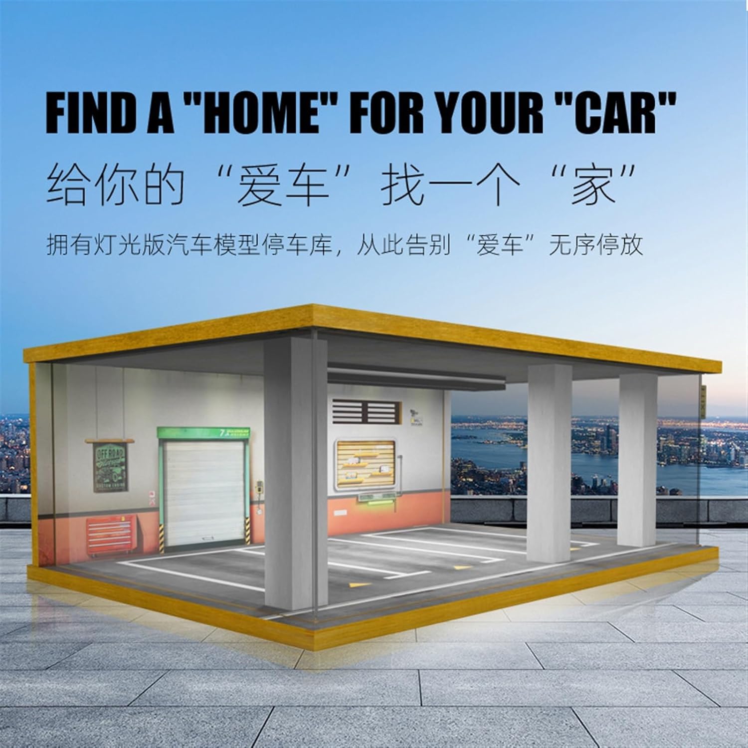 1/24 ornamenti di illuminazione della scatola di visualizzazione della scena del garage di parcheggio in legno simulato del modello dell'automobile Realizzato con stampa + colonne in lega di alluminio + acrilico altamente trasparente, resistente alla polvere e durevole Design antipolvere push-pull su 3 lati, sorgente luminosa incorporata nella parte superiore, accendi l'interruttore di controllo per illuminare la tua "auto" Parcheggio Modellino Auto Con scene dall'atmosfera speciale, puoi divertirti a mostrare preziose collezioni nel tuo ufficio o a casa. Questo è un ottimo regalo per gli appassionati di auto che hanno appena iniziato le loro collezioni e un'ottima idea per coloro che apprezzano i display superbi.