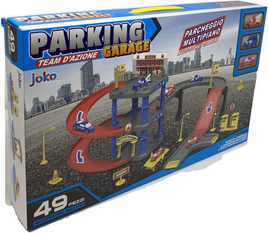 Fantastico parcheggio multipiano della squadra di pronto intervento della citta! Il parcheggio si sviluppa su tre piani e presenta tre diverse aree di servizio: garage, autolavaggio e stazione di servizio. Il set comprede 49 pezzi, utili per la costruzione del parcheggio, inclusi tre veicoli diversi. Il parcheggio è contenuto in una confezione in cartone, ottima come idea regalo. Dimensione confenzione: 45 x 27 x 7 cm
