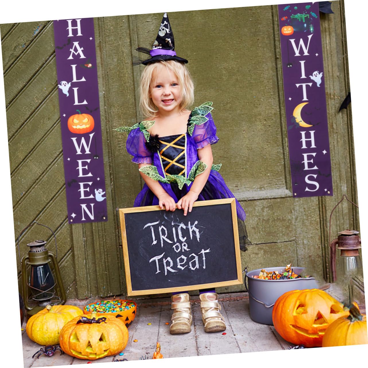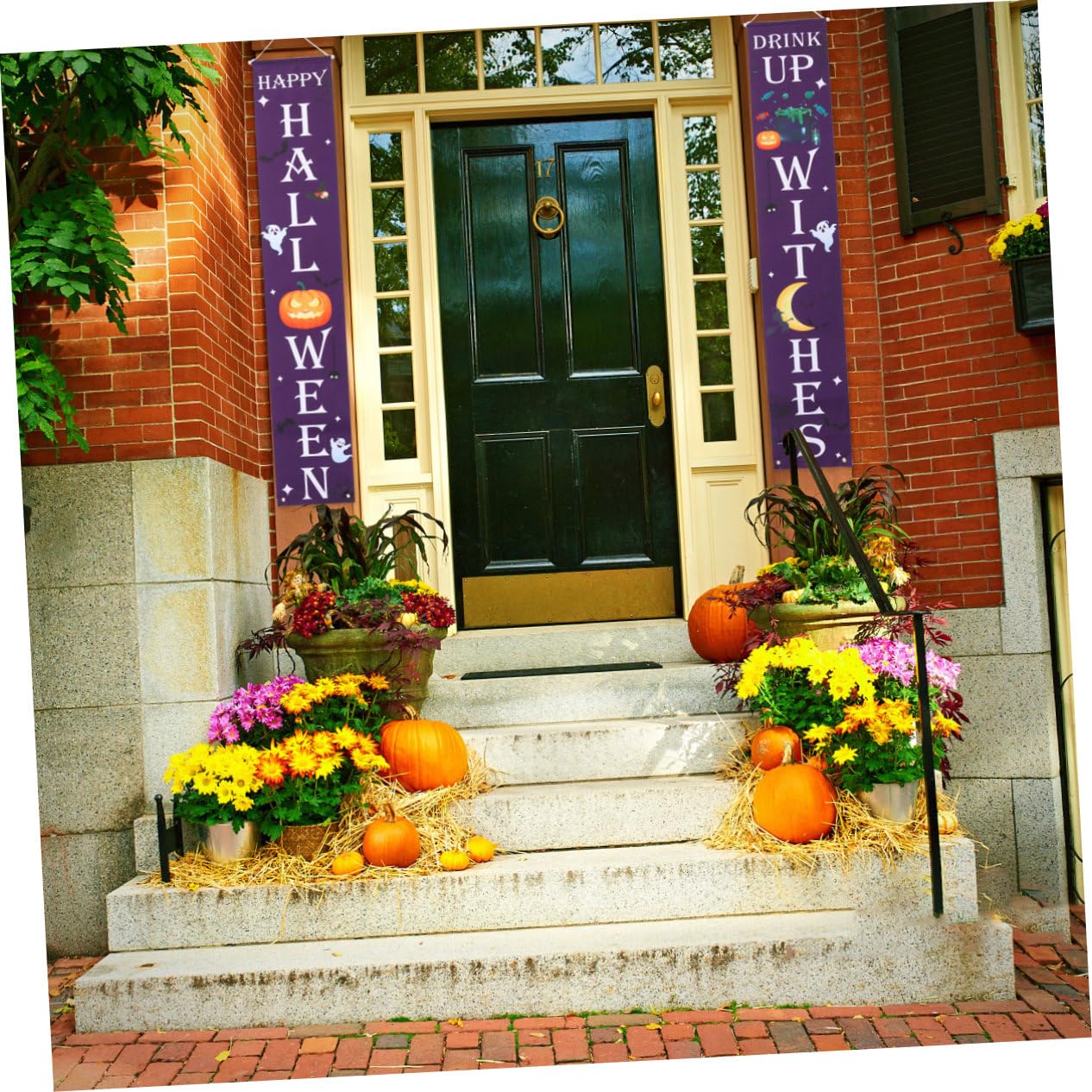 Banner decorativo per porta: il banner per porta sospeso è ottimo per le feste di Halloween, ottimo per eventi interni ed esterni, banner per porta delle streghe. Decorazione di zucca: classico design di stampa di Halloween con una trama molto piacevole, Halloween. Zucca: facile per ravvivare la stagione spettrale, striscione del portico di Halloween. Tenda per porta di Halloween: possono anche essere utilizzate come sfondo fotografico per scattare alcune foto significative con i tuoi amici, striscione del portico di Halloween all'aperto. Decorazione esterna: con colori vivaci e design di parole specifiche, divertente e festosa, facile da creare un'atmosfera da festival, decorazione della porta d'ingresso di Halloween.