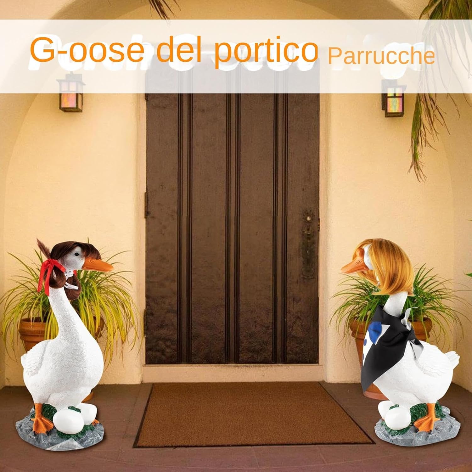 Difficile da Danneggiare: Prodotta con materiale UV resistente e fibra sintetica robusta, questa decorazione esterna ha colori indelebili che preservano vivacità e integrità in tutte le stagioni, ideale per esposizioni durature Set 3 Parrucche: Tre parrucche decorazione stagionale stile bob ondulato, perfette accessori costumi festivi e decorazioni tematiche, offrono molteplici soluzioni creative per allestimenti festivi originali Fiocchi incantevoli: Arricchisci il tuo spazio outdoor con decorazioni creative per oche da giardino, complete di deliziosi fiocchi che un effetto unico, ideali per abbellire portici e cortili con stile Ampio utilizzo: crea momenti indimenticabili con questo accessorio per stile esterno festoso, allestimenti da giardino per feste, decorazioni per piscina e anche come accessorio per costumi di Pasqua, adatto a ogni situazione Soluzione Decorativa Istantanea: Accessorio con cinturini regolabili assicura montaggio immediato mantenendo stabilità sulle oche decorative senza spostamenti indesiderati durante l'uso