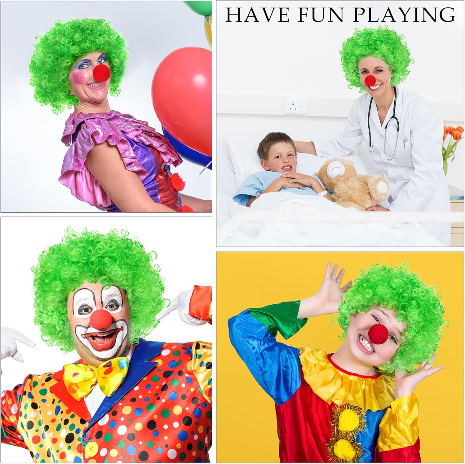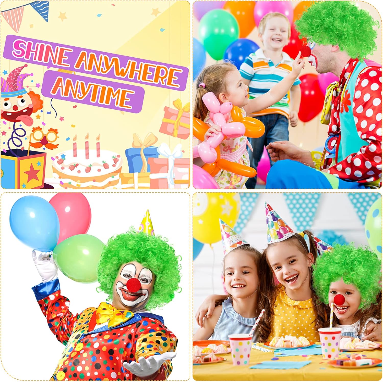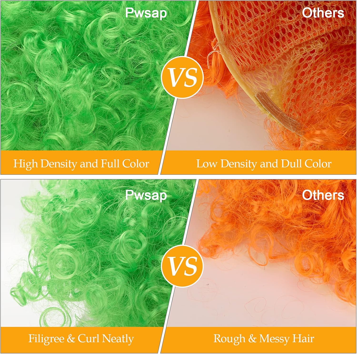 Parrucche afro Colorate - Trasforma il tuo look in un istante con una di queste parrucche afro favolosamente oltraggiose e nasi da clown, ti aiutano a entrare nel personaggio e diventare immediatamente un clown, un libro o un personaggio dei cartoni animati. Più colori possono abbinarsi ai tuoi vari costumi, facendoti brillare e attirare l'attenzione. Adatto a tutte le feste in maschera, cosplay e spettacoli teatrali Divertiti con i tuoi Amanti -Le nostre parrucche in costume cosplay sono disegnate con colori colorati e vivaci, con queste parrucche di capelli corti da clown, puoi cambiarle e abbinarle a tutta la tua decorazione. Ideale per grandi eventi come corse divertenti, festival o spettacoli teatrali. Usalo durante la Giornata mondiale del libro per le nonnine birichine Puoi divertirti alla grande con amici e familiari Materiale Premium - Il nostro parrucchino colorato per feste quotidiane è realizzato in polietilene, flessibile e traspirante, resistente e comodo da indossare, senza spargimento e grovigli, non devi preoccuparti che causino rotture ai capelli. Il naso da clown rosso è realizzato in morbido materiale spugnoso, rotondo e prominente, leggero e confortevole Taglia Universale - La parrucca riccia da clown è dotata di un elastico all'interno, si adatta a una circonferenza della testa da piccola a media a grande, applicabile sia a bambini che ad adulti. Il naso da clown rosso può essere facilmente indossato sul naso e il suo materiale leggero consente a chi lo indossa di respirare ed esprimersi liberamente. Le nostre parrucche da clown sono anche un regalo squisito per moglie, figlia, figlio e amici per compleanni, Halloween, anniversari e Natale Must Have for Party - Le divertenti parrucche cosplay di Pwsap sono adatte per la festa di cosplay di Halloween, feste in maschera, addii al celibato, feste degli anni '80 o '90, feste in maschera, feste a tema circense o per abbigliamento decorativo come abbigliamento da clown. Indossa le nostre parrucche da clown per renderti più attraente ed essere al centro della festa