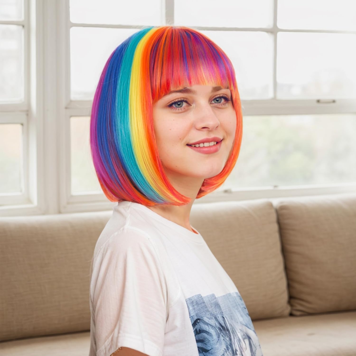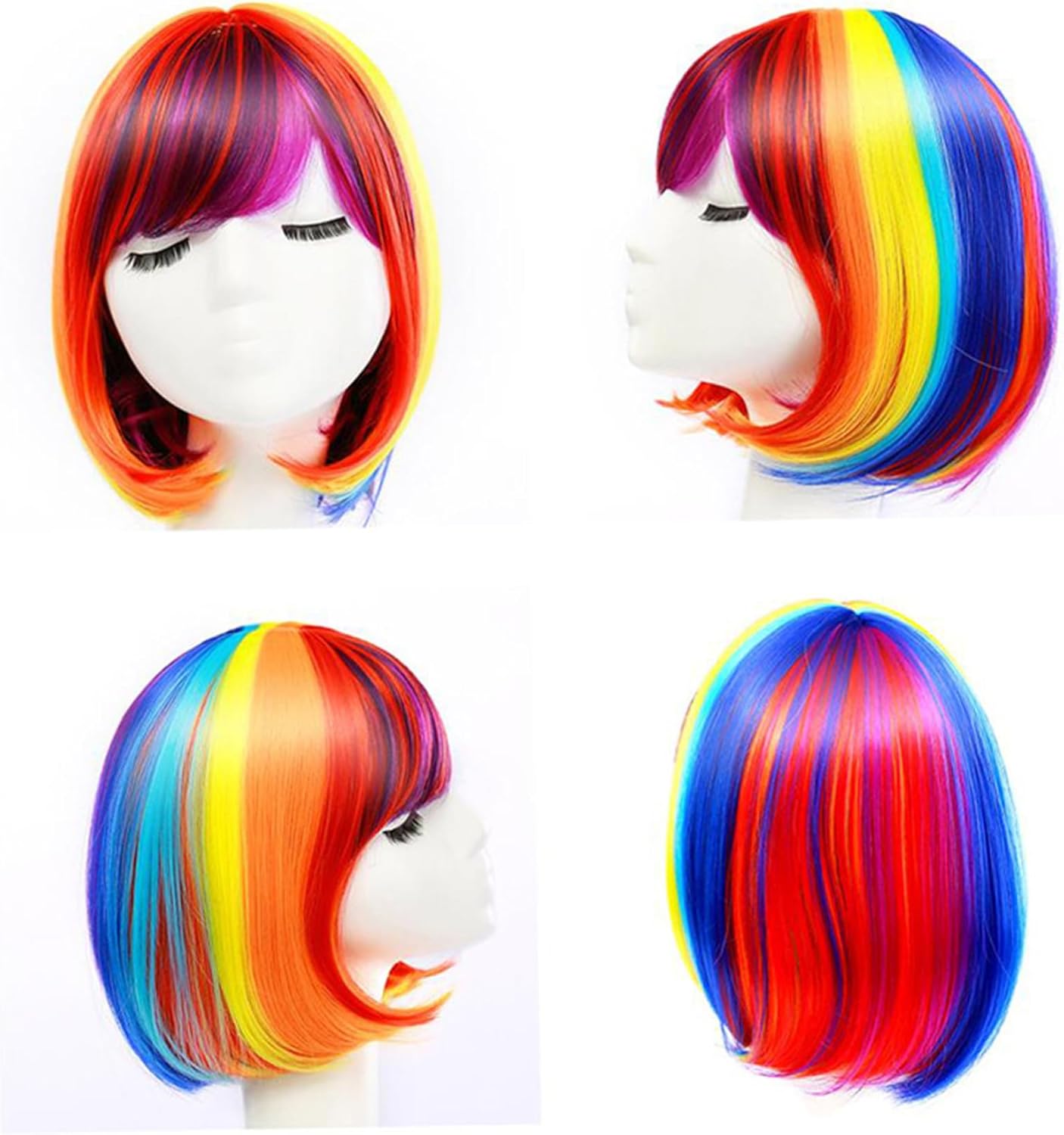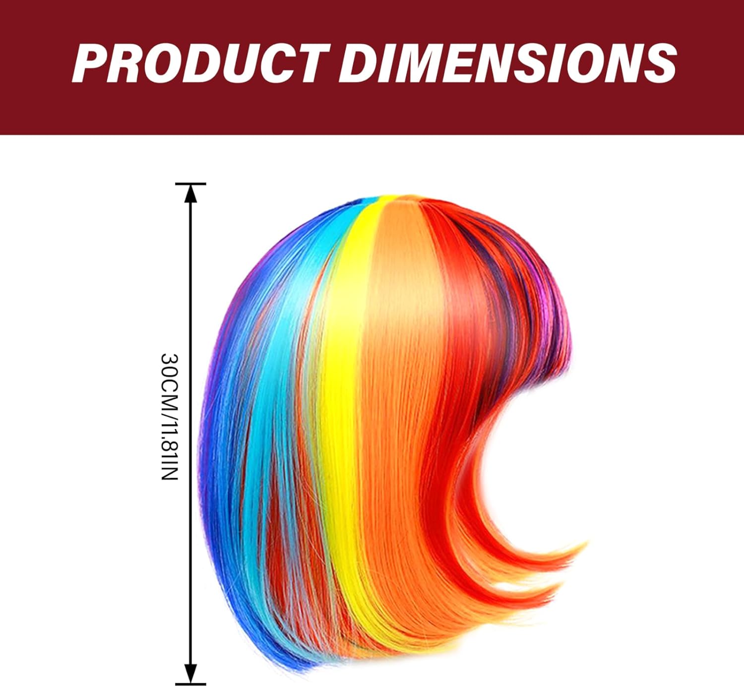 Short ed elegante con la frangia: la lunghezza di 12 pollici offre un look chic e moderno che è facile da mantenere, mentre i colpi aggiungono un tocco giocoso al tuo stile, perfetto per una dichiarazione di moda audace. Parrucca di rainbow parrucca colorata Vibranti colori arcobaleno: questa parrucca arcobaleno presenta un sorprendente mix di tonalità arcobaleno, tra cui sfumature di rosso, blu, verde, giallo e viola, per creare un look divertente e accattivante che sicuramente gireranno la testa..Parrucche colorate parrucche colorate Adattamento regolabile: la parrucca arcobaleno è dotata di un cappuccio regolabile per garantire una vestibilità sicura e confortevole per la maggior parte delle dimensioni della testa, in modo da poterlo indossare facilmente senza preoccuparti di scivolare via..Parrucche colorate parrucca colorata Conforzo e traspirante: a base di fibre chimiche, questa parrucca colorata è traspirante e leggero, rendendo comodo da indossare per lunghi periodi senza causare disagio o irritazione..Parrucche colorate parrucche divertenti per la festa Perfetto per ogni occasione: sia che tu stia partecipando a una festa, celebrate un festival o che stai cercando un nuovo aspetto divertente, questa parrucca colorata è l'accessorio ideale per ogni occasione..Parrucche divertenti per parrucca per feste di festa