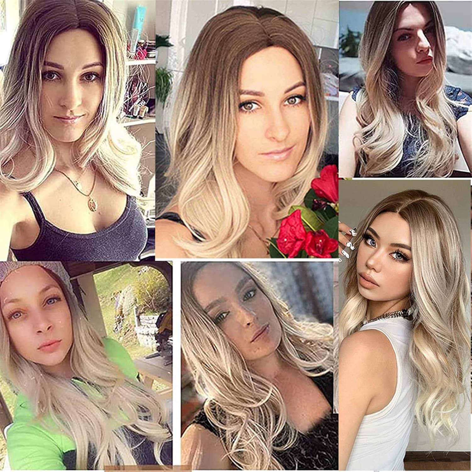 Specifiche: Lunghezza: 24 pollici, parrucca bionda lunga e ondulata con effetto sfumato e radici scure. Alla moda e affascinante, la parrucca in fibra resistente al calore aggiungerà più fascino e divertimento a te. Materiale dei capelli: fibra sintetica, che rende la parrucca sintetica da cosplay con parte centrale morbida, naturale, liscia ed elastica, senza lucentezza artificiale. Design del cappello: la circonferenza media del cappello è di 21,5-22,5 pollici, dotato di una fibbia regolabile e 2 cinturini regolabili per aiutarti a regolare facilmente la taglia della cuffia della parrucca. La cuffia in rete traspirante è comoda da indossare e resistente per un uso a lungo termine. Ampia applicazione: questa parrucca naturale con radice scura è perfetta per l'uso quotidiano, appuntamenti, feste, matrimoni, spettacoli a tema, Halloween. Nota: al primo utilizzo, si consiglia di pettinare i capelli con le dita o di pettinare la parrucca con un pettine a denti larghi.