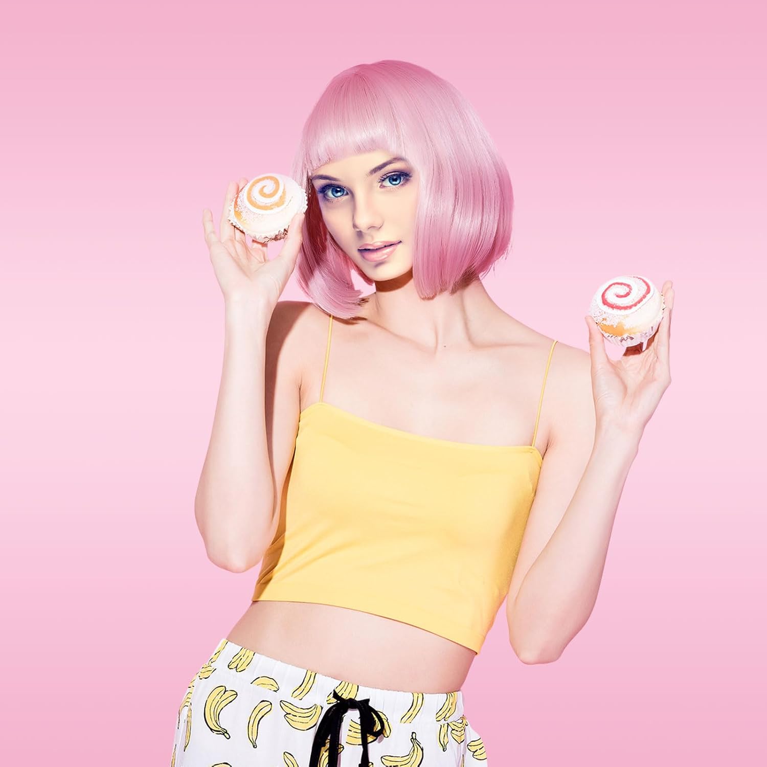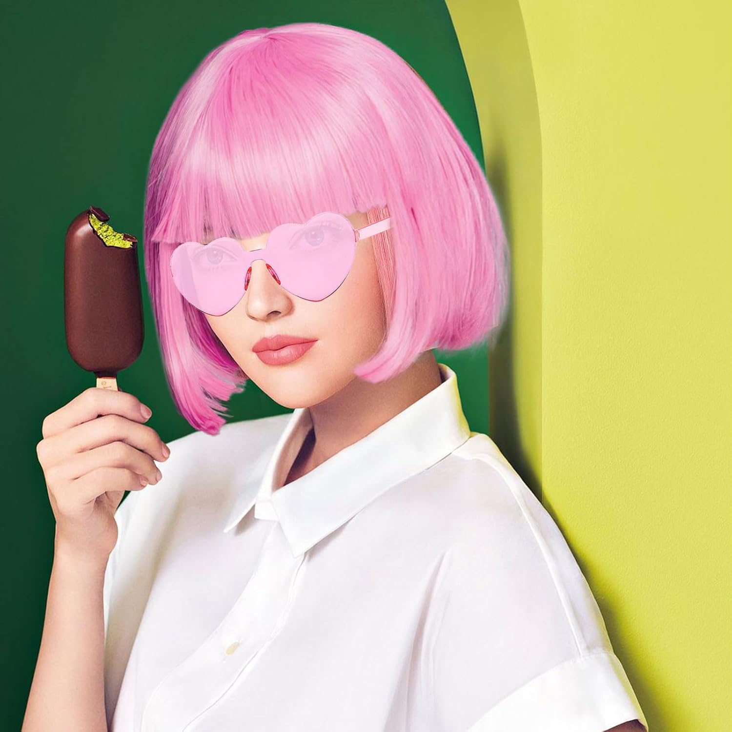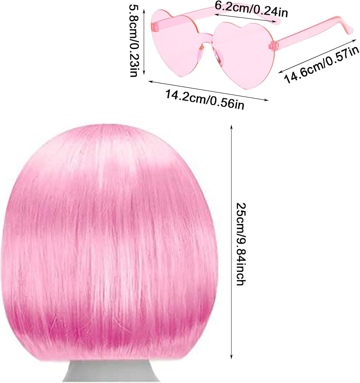 Parrucche colorate in primo piano: riceverai 1 pezzo di parrucca bob corta + 1 pezzo di occhiali da festa nei colori rosa + 1 pezzo di cuffia per parrucca, abbastanza per soddisfare le tue varie esigenze. Queste parrucche con la frangia ti renderebbero più accattivante. Fancy Dress: le acconciature Bob sono un ottimo stile di capelli alla moda. Migliora il tuo outfit in maschera in un istante con una di queste parrucche corte dall'aspetto favoloso. Diventa istantaneamente una regina del ballo, una diva della discoteca, un personaggio della Giornata mondiale del libro, una star del cinema o un personaggio teatrale. Qualità e comfort: le parrucche sono costruite attorno a un cappuccio a rete leggero e regolabile. Sono entrambi durevoli e riutilizzabili. Design delicato: i colori della parrucca sono luminosi e vibranti, sono progettati con una manica in rete all'interno, confortevole e traspirante, la manica in rete è progettata con un elastico, puoi regolarne le dimensioni. Regalo: queste parrucche colorate per capelli sarebbero regali perfetti per la tua ragazza e le tue amiche, in particolare le donne amanti del cosplay. Inoltre, queste fantasiose parrucche con capelli corti sono adatte sia per le feste che per la vita quotidiana.