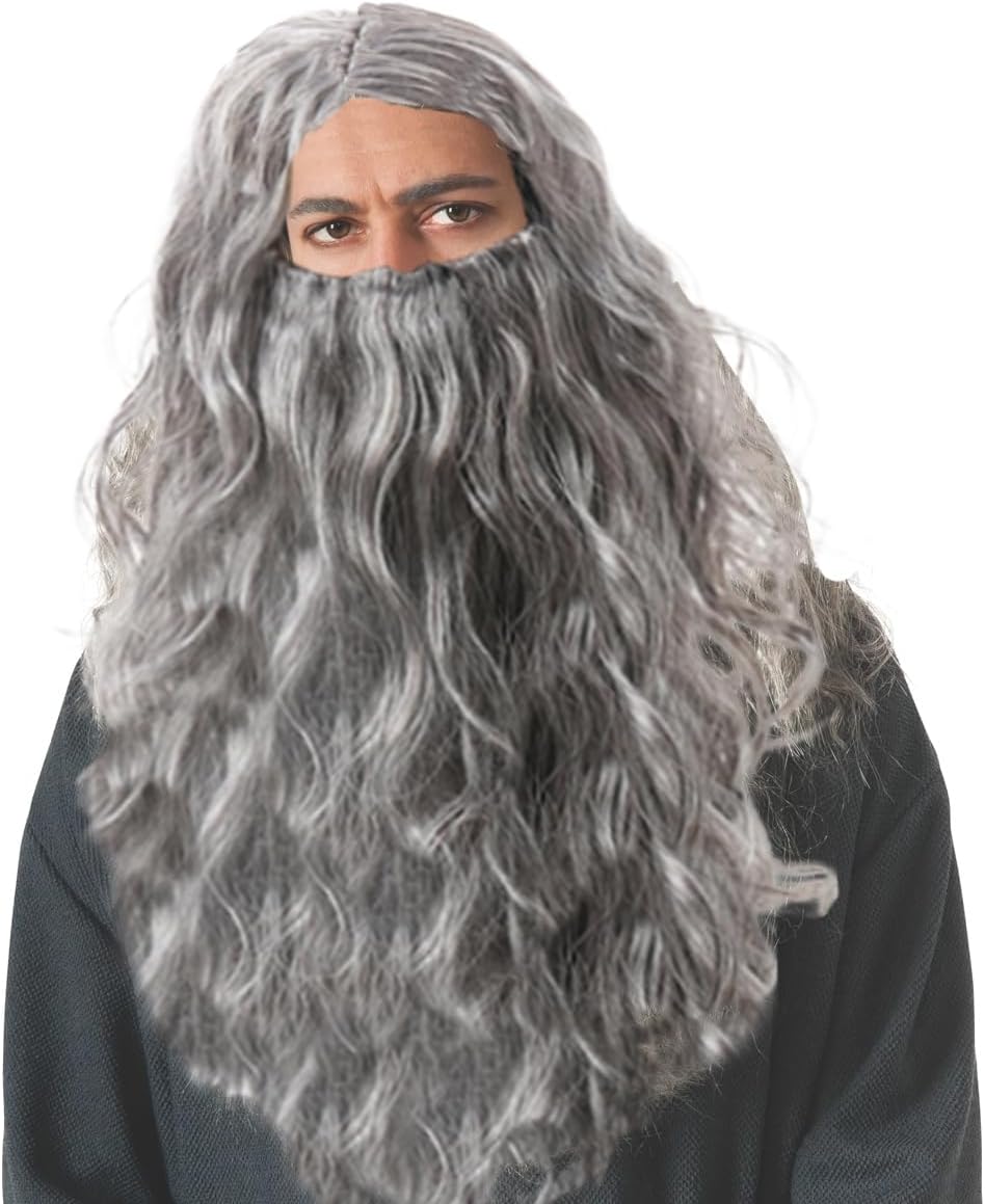 Parrucca e barba in costume: questi set di parrucche e baffi sono ideali per qualsiasi spettacolo, cosplay mago e personaggi medievali. Design traspirante e morbida fibra sintetica, liscia e setosa, sensazione al tatto e movimento come veri capelli umani. Materiale: questi set di parrucche e baffi sono realizzati con fibre sintetiche importate resistenti al calore, che hanno un colore dall'aspetto naturale e morbido e setoso al tatto. Facile da indossare: le nostre parrucche lunghe e ricci sono facili da indossare, pulire, maneggevoli e facili da togliere. Agitare un po 'e acconciare leggermente con le dita per rendere la parrucca più naturale. Varie occasioni di utilizzo: ideale per cosplay, notte di Halloween, stile retrò, feste di carnevale, cosplay mago e personaggi medievali e tutte le altre occasioni. Si prega di notare: tutte le parrucche cadono facilmente, soprattutto quando le si indossa per la prima volta. Ci sono alcune differenze di colore a causa della luce e del monitor.