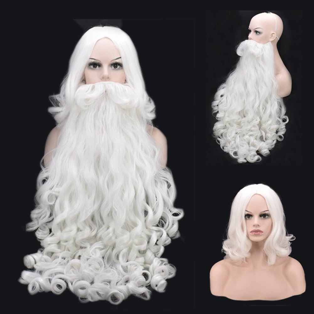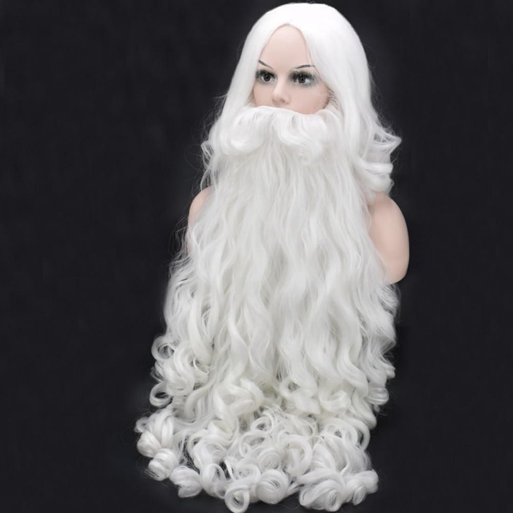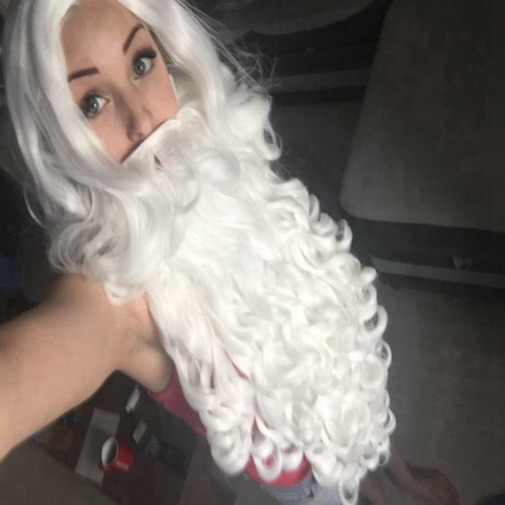 Per Halloween, Carnevale, feste in maschera, addii al celibato. Per Natale, Carnevale, feste in maschera, ecc. Taglia unica, comoda e traspirante. Questo accessorio per costume da Babbo Natale include un set con una lunga parrucca bianca ondulata e una barba. La barba bianca riccia e la parrucca evidenziano il tuo fascino personale e attirano l'attenzione degli altri.