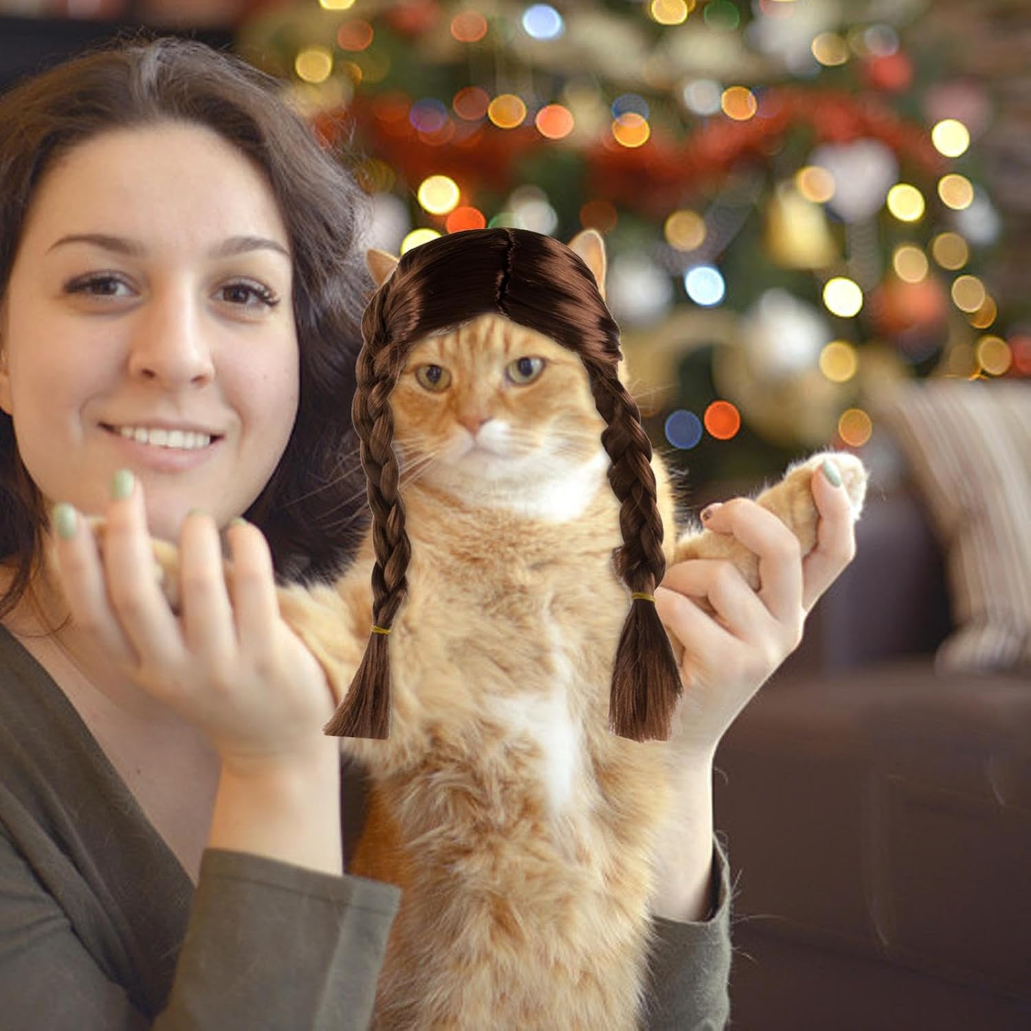 Parrucca Cosplay per cani parrucca per animali domestici | Parrucca per gatti a doppia treccia lunga | Cosplay per animali domestici per Halloween, Natale, feste, festival
