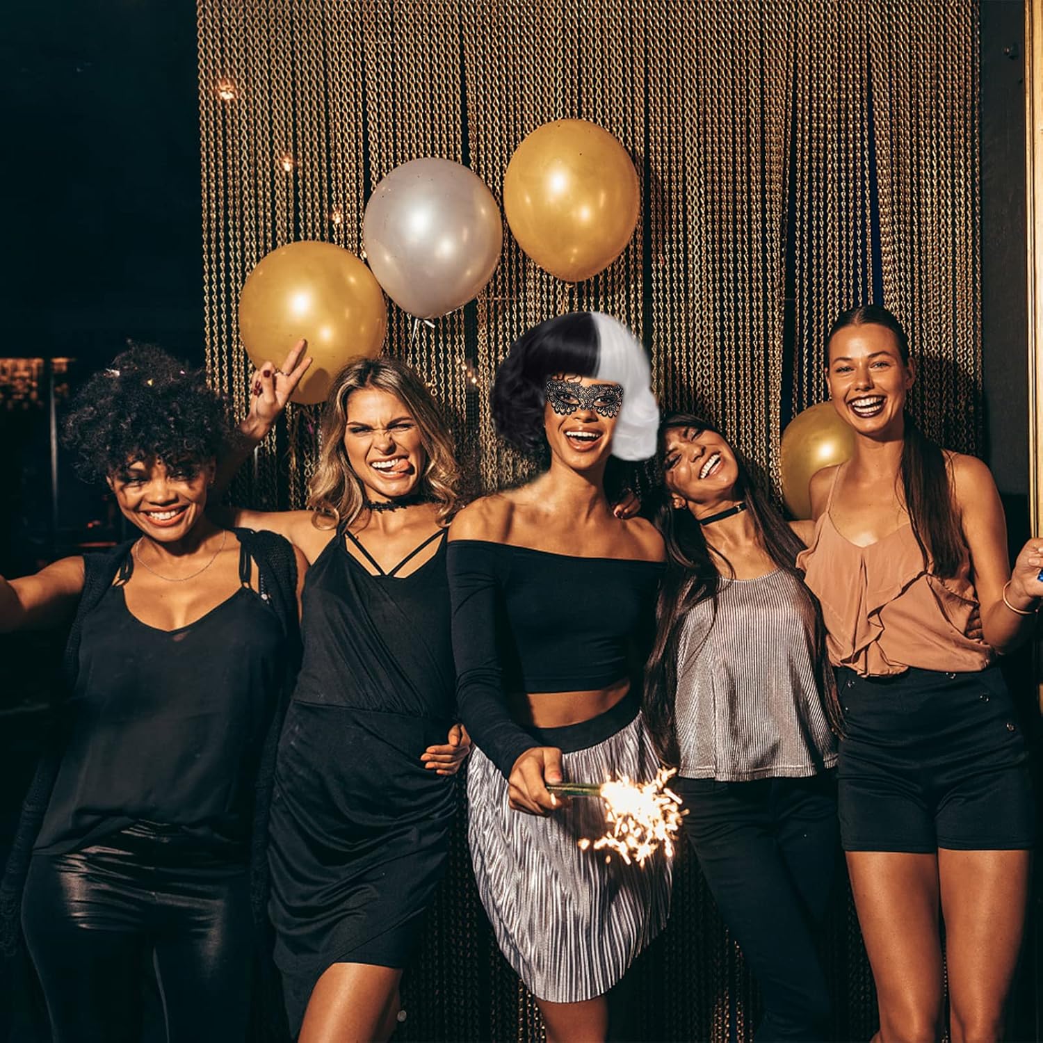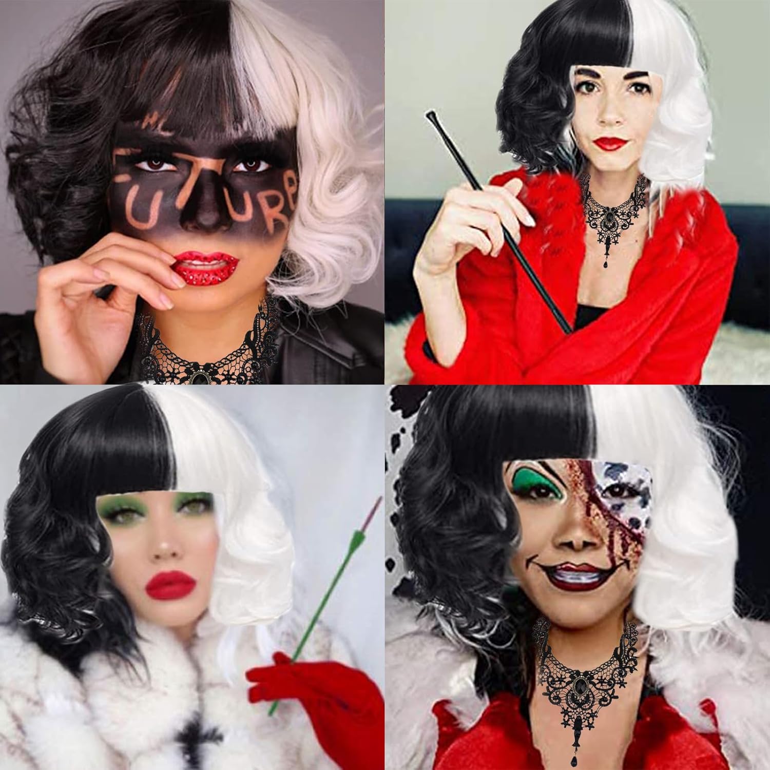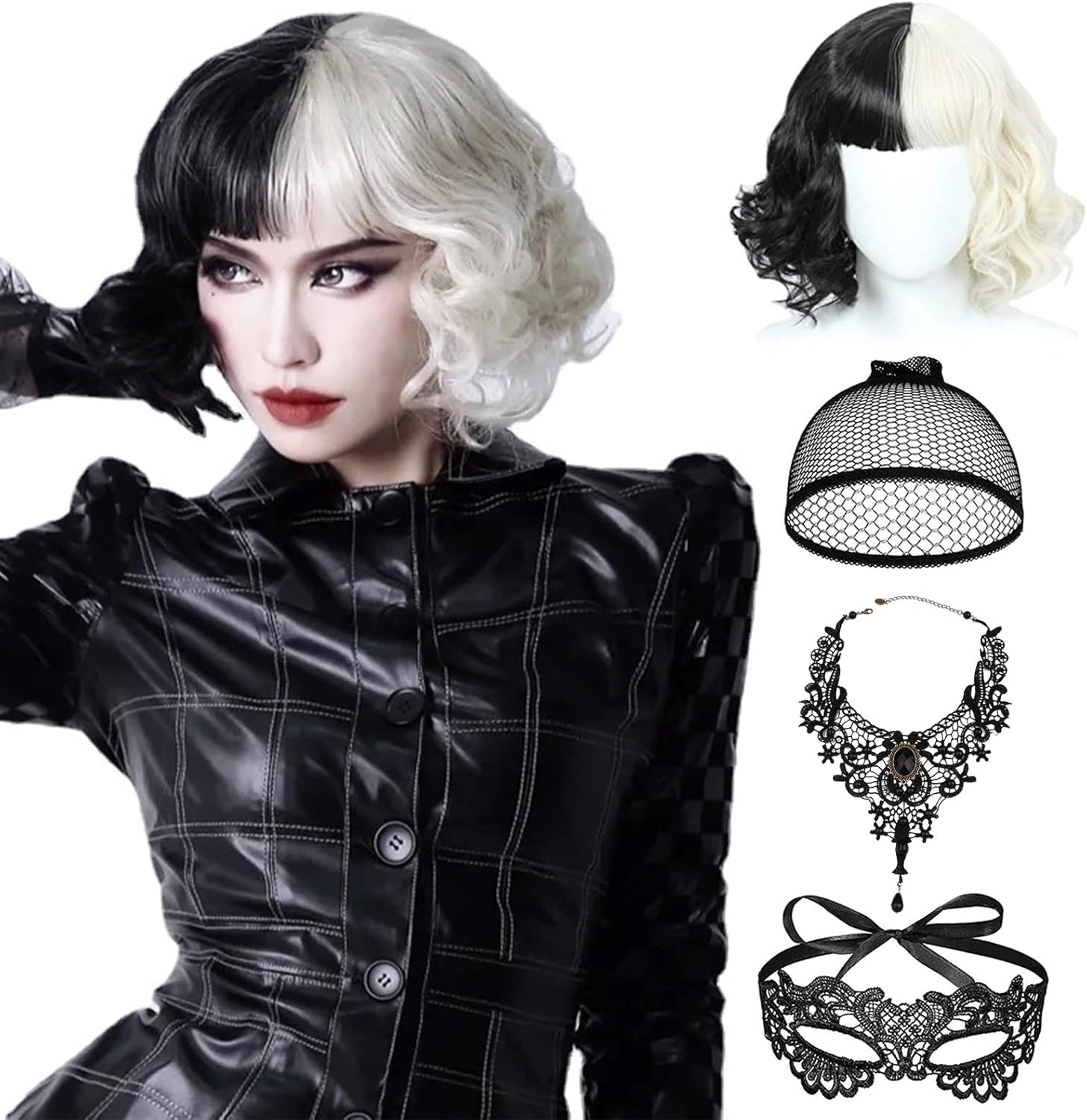 Crudelia demon cosplay Set: riceverai 1 Halloween crudelia demon parrucca, 1 berretto per parrucca, 1 Maschera per gli occhi in pizzo nero e 1 collana da donna in pizzo nero. Parrucca crudelia demon moda e forma unica ti porteranno un'esperienza diversa. Indossare parrucca cruella e l'esotica catena a clavicola in pizzo nero ti darà più sicurezza e fascino in una folla o in una festa.Design unico a colori, ti fa sembrare più alla moda e alla moda. Cappello regolabile: la maglia interna foderata dell'Halloween crudelia parrucca è regolabile. L'archetto ha una fibbia di regolazione in 8 posizioni per una vestibilità morbida e sicura e un maggiore comfort. cruella wig può adattarsi alle dimensioni e alla forma della testa della maggior parte delle persone, adatto per testa e coda di 50 ~ 60 cm.Molto facile da mettere e togliere, ti fa risparmiare più tempo.Comodo da indossare, nessun danno ai capelli. Tagliabile: il nostro Halloween parrucca bianca e nera crudelia può essere tagliato o lavato. Crudelia demon parrucca frangia e lunghezza possono essere adattati alle tue esigenze, puoi tagliare alla lunghezza che desideri. Parrucca crudelia demon può essere lavato con acqua e asciugato naturalmente all'aria in un luogo ventilato, il che può farti risparmiare tempo.Design molto elegante, sarai il ruolo che vuoi essere, ti porterà divertente e felice Materiale di alta qualità: Halloween parrucca crudelia demon donna è realizzato in fibra sintetica resistente al calore di alta qualità. La seta ad alta temperatura è morbida al tatto, ha un aspetto naturale e realistico ed è lavabile. Lo strato interno cruella parrucca di comoda e traspirante maglia a bottoni adotta un design traspirante al 100%, che non è soffocante, comodo da indossare e non danneggerà i capelli.Design traspirante, non soffocante, comodo da indossare. Ampia gamma di applicazioni: Halloween parrucca cruella è perfetto per Halloween, carnevali festivi, feste natalizie, feste a tema, carnevali, feste in costume a tema, cosplay, feste di club, sfilate di moda, Natale, spettacoli teatrali, ecc. Halloween parrucca crudelia demon donna può essere utilizzato tutto l'anno. Cruella parrucca sarebbe l'ideale per te.perfetta per gli amanti delle parrucche e dei cosplay. È adatto per molte occasioni, come riprese fotografiche, cosplay, feste in costume.