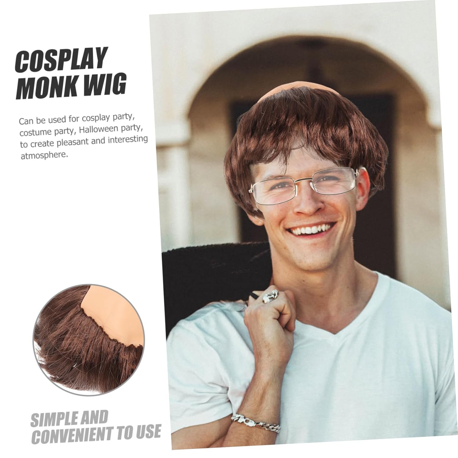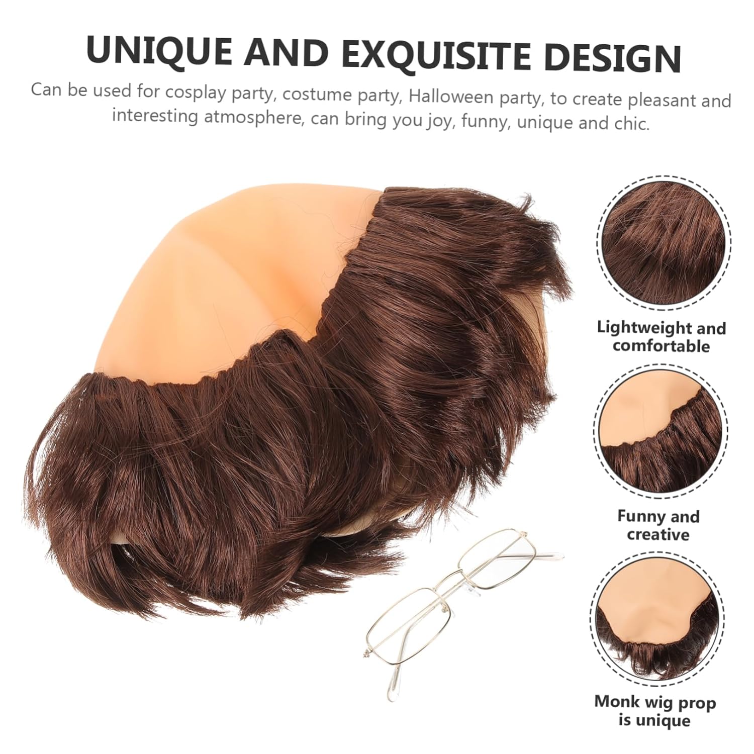Parrucca cosplay - Adatta per adulti e uomini, la divertente parrucca calva si adatta bene al tuo costume cosplay. Accessorio per parrucca cosplay: leggero e comodo da indossare, divertente e creativo, accessorio per parrucca da monaco unico e . Parrucca da festa cosplay: pregevole fattura e dettagli raffinati, aspetto realistico e realistico, unico e decorativo. Parrucca da monaco: pregevole fattura, consistenza fine, sensazione di mano confortevole, adatta per feste cosplay, feste in costume. Divertente parrucca cosplay: con un divertente design a testa calva, questa parrucca da monaco può essere utilizzata come oggetto di scena per cosplay o per foto.