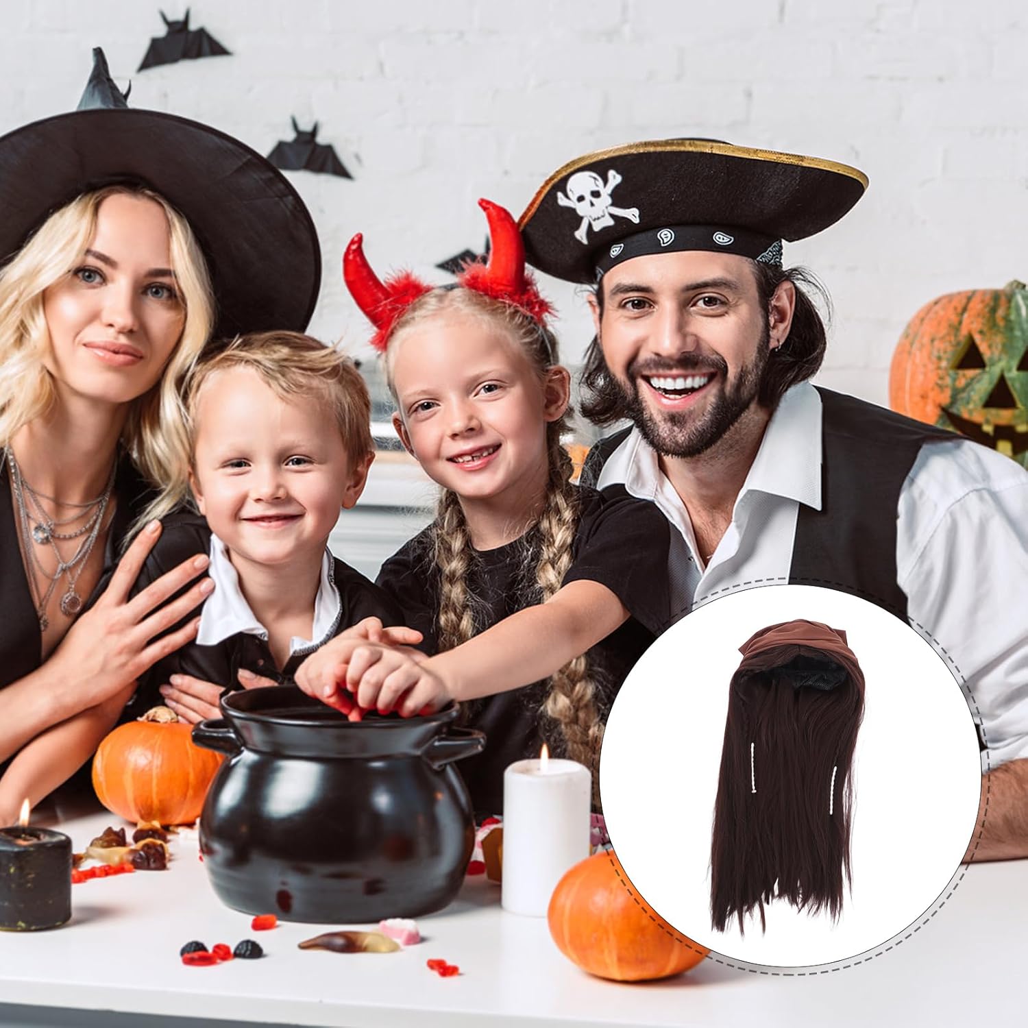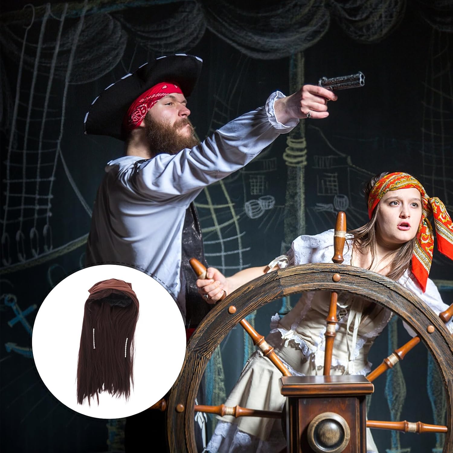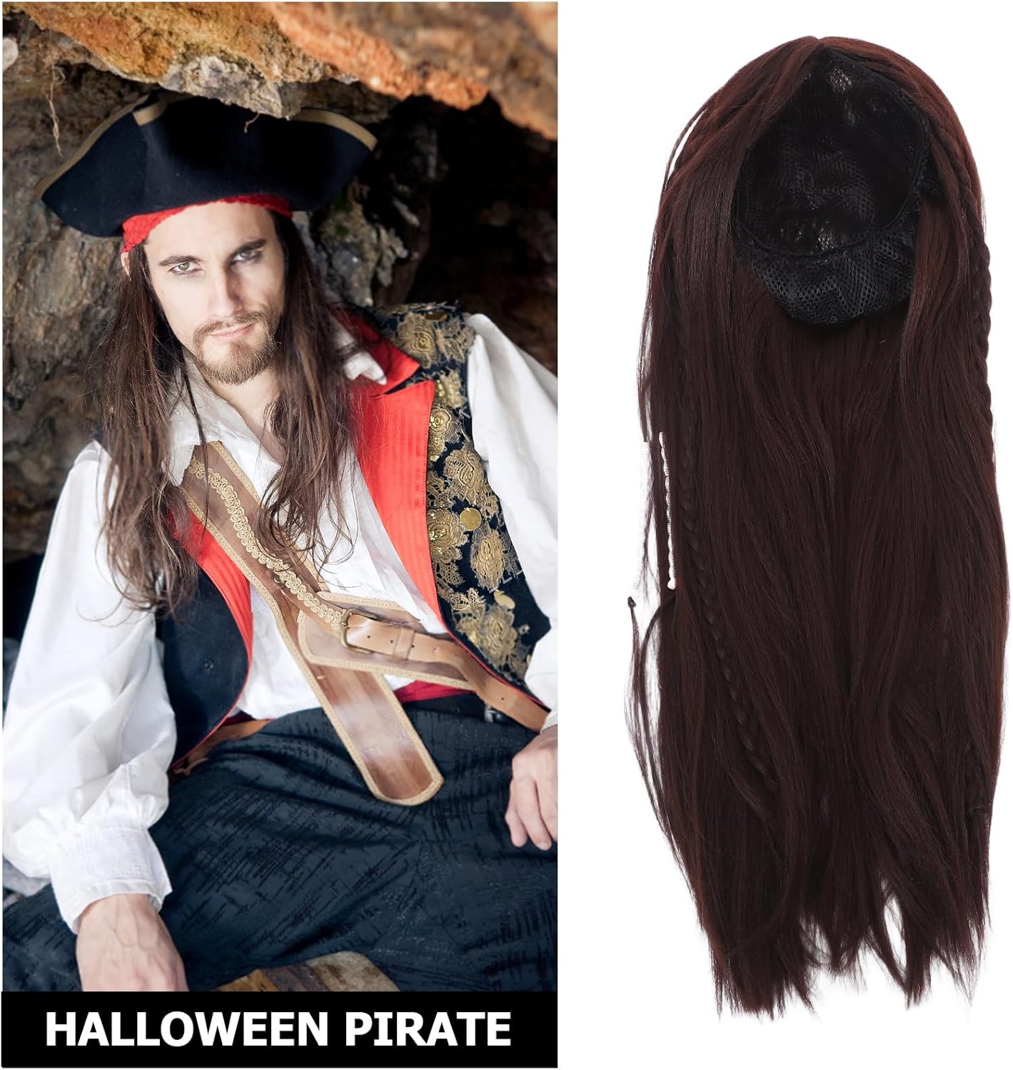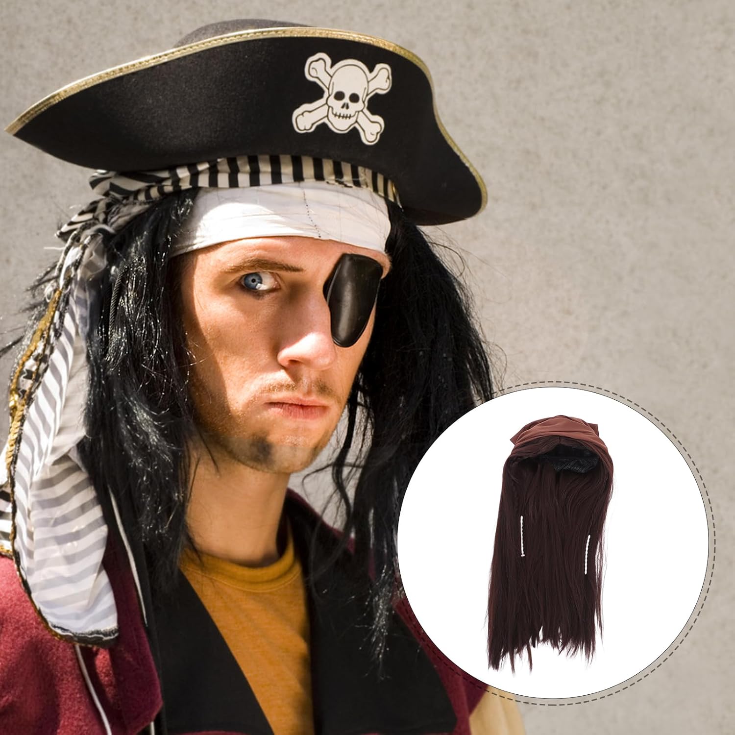 Descrizione Questa parrucca da pirata di Halloween con foulard è pensata per feste in maschera, eventi cosplay e celebrazioni a tema. Caratterizzata da un intenso colore marrone e da una texture realistica, aggiunge autenticità al tuo look da pirata. Il foulard integrato esalta l'estetica generale, rendendola perfetta per creare un personaggio audace e avventuroso. Caratteristiche -Colore: marrone chiaro -Materiale: fibra ad alta temperatura -Dimensioni: 86,00X79,50X0,10 cm/33,80X31,24X0,04 pollici -Dimensioni: 70,00X17,00X17,00 cm/27,51X6,68X6,68 pollici -Design unico: trasformati all'istante in un accattivante personaggio pirata con questa parrucca e questo foulard, rendendoti il centro dell'attenzione alle feste di Halloween e agli eventi a tema -Materiale confortevole: realizzato con materiali traspiranti e leggeri, che garantiscono comfort durante l'uso prolungato senza surriscaldamento o irritazione - Stile versatile: si abbina perfettamente ai costumi da pirata e ad altri vintage, offrendo un'integrazione perfetta per un look completo e autentico - Aspetto realistico: la parrucca marrone presenta un design naturale e realistico, migliorando la tua esperienza cosplay con realismo e dettagli aggiunti -Uso multi-occasione: ideale per Halloween, feste a tema, spettacoli teatrali ed eventi cosplay, il che lo rende un'aggiunta versatile alla tua collezione di costumi