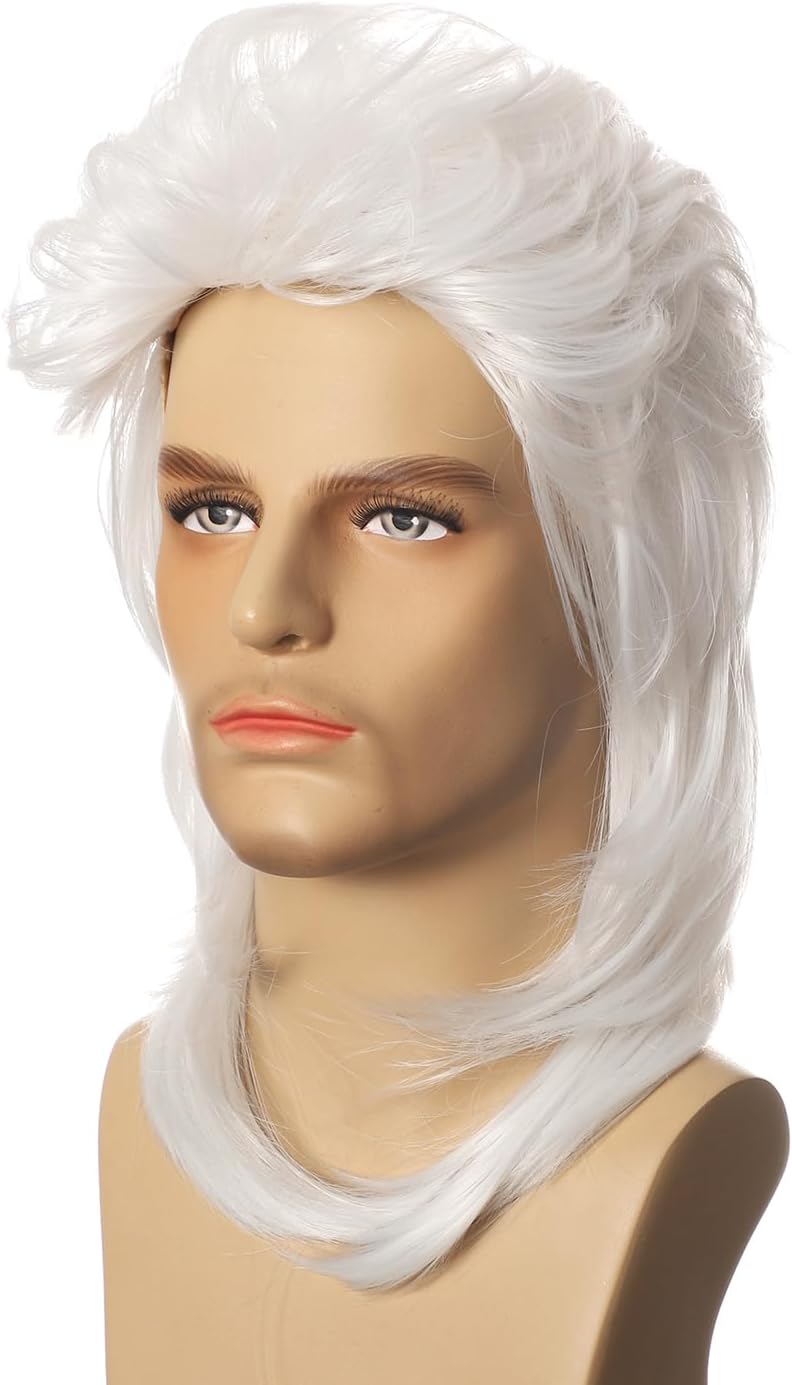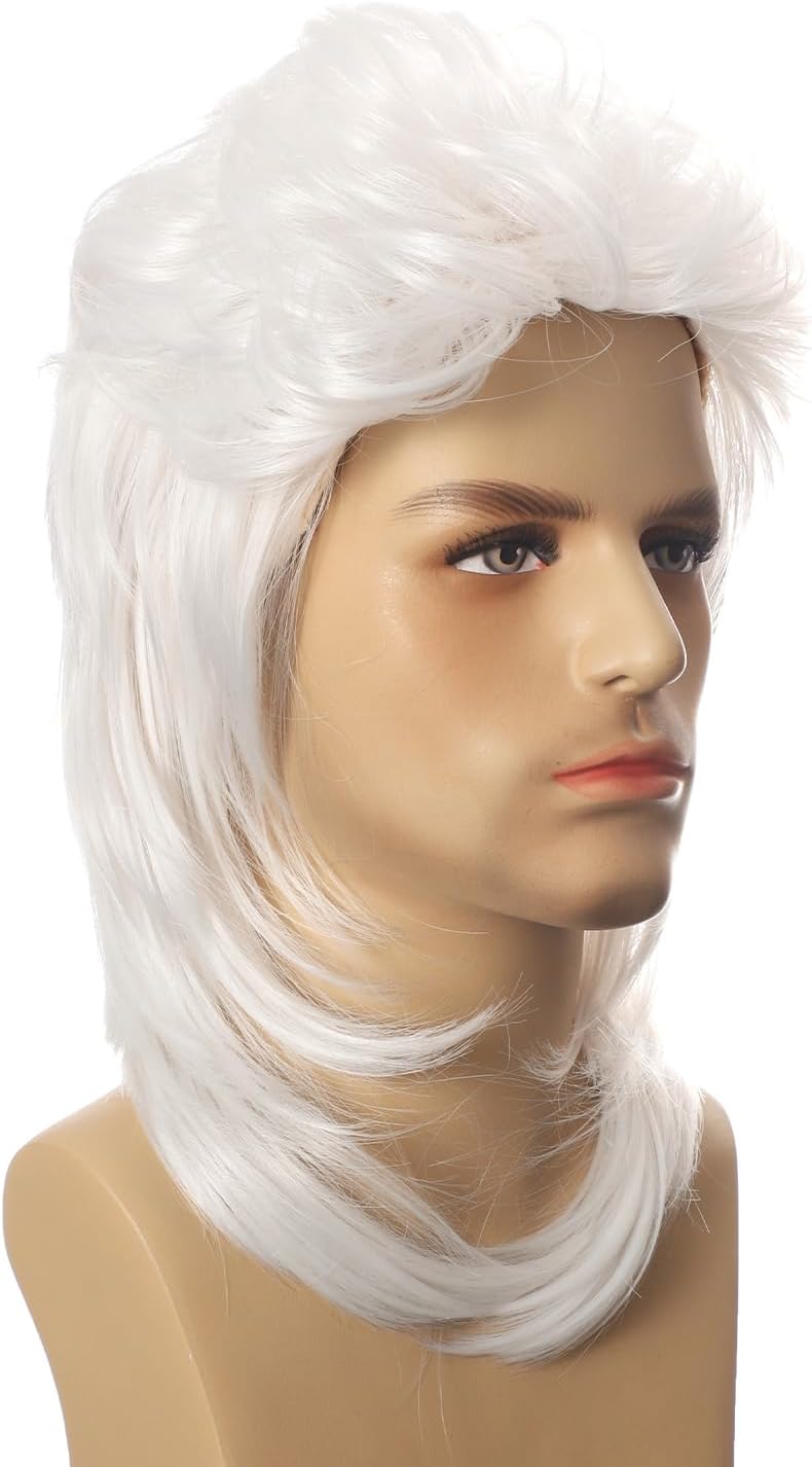Materiale: la parrucca da uomo anni '80 è realizzata in fibre sintetiche resistenti al calore di alta qualità, più resistenti e morbide al tatto, proprio come i capelli veri, molto vicine all'aspetto dei capelli. Cuffia per parrucca: le nostre parrucche da uomo hanno una cuffia regolabile e traspirante in modo da poter regolare il gancio all'interno della cuffia alla dimensione corretta per aiutarti a indossare la parrucca. Occasione: parrucca triglia perfetta per Halloween, cosplay anime, feste in costume, feste a tema, matrimoni, concerti, Natale, appuntamenti, posto di lavoro e qualsiasi altra occasione, regalo per familiari e amici. Conservazione e pulizia: la parrucca da donna maschile è comoda, morbida, il modo migliore è su un supporto per parrucche o manichino, inoltre è possibile riporla in una rete per capelli e in un sacchetto di plastica. La parrucca deve essere collocata in un luogo fresco e asciutto, lavare con shampoo in acqua fredda, lasciare asciugare naturalmente. Servizio: Abbiamo un team post-vendita professionale, se avete domande sulle parrucche, vi aiuteremmo immediatamente!